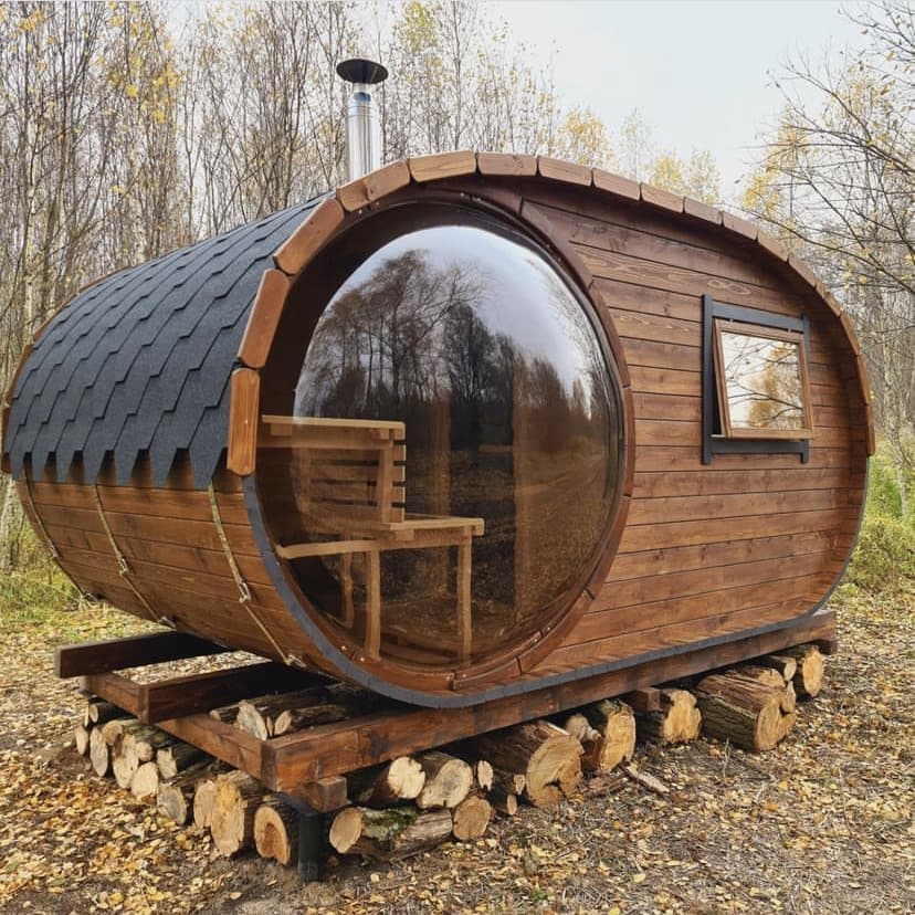 Аутентичная русская баня со сферическим окном, печью с карельскими камнями и наборами масел для полного расслабления.