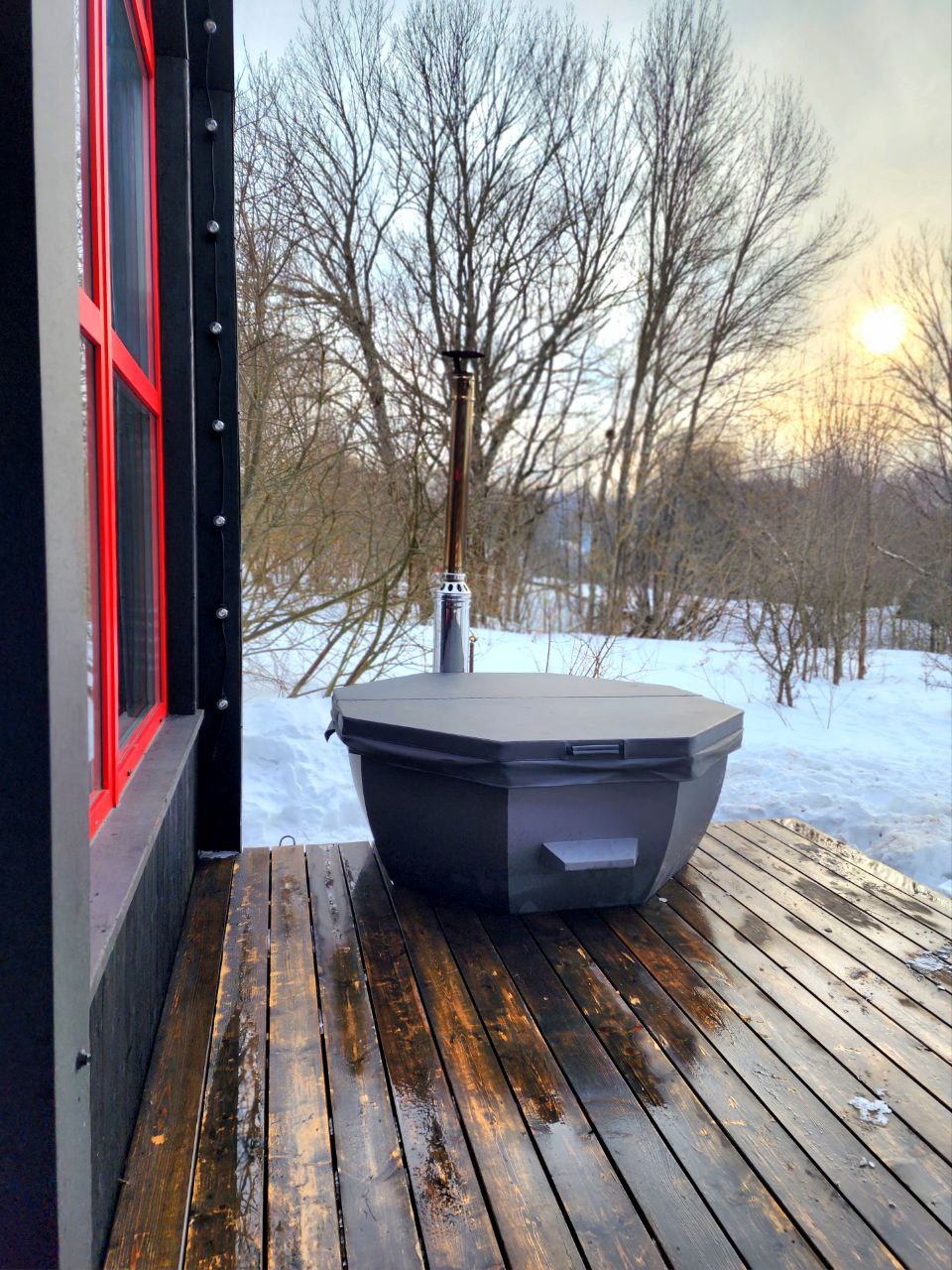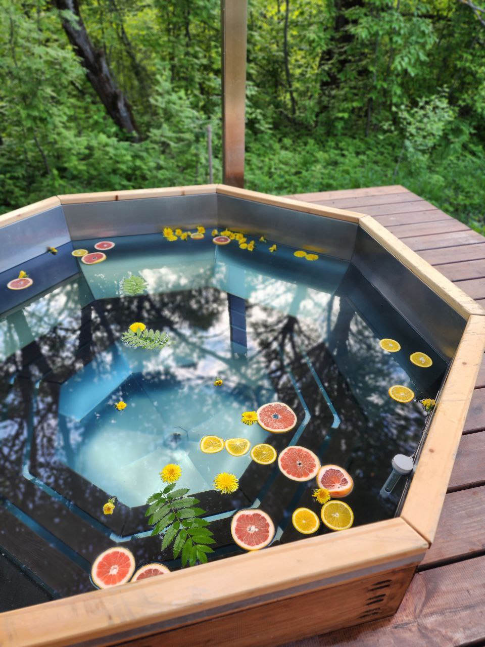 Горячий чан с видом на лес — идеальное место для медитации и восстановления.