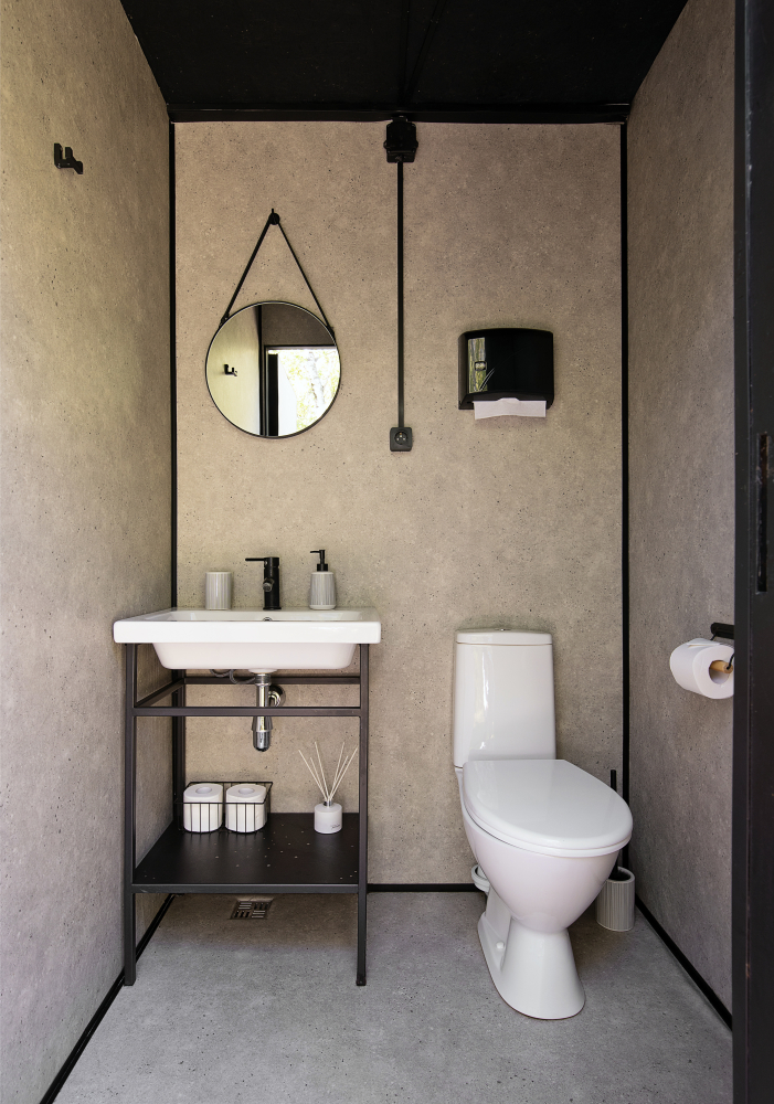 Комфортабельные туалеты и душевые поблизости от бунгало.