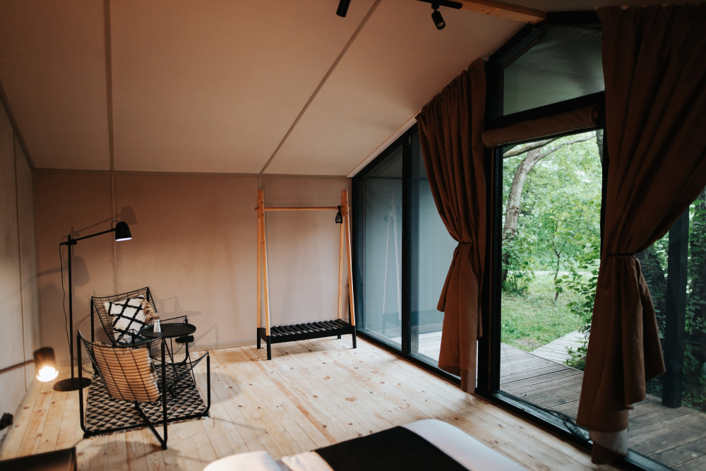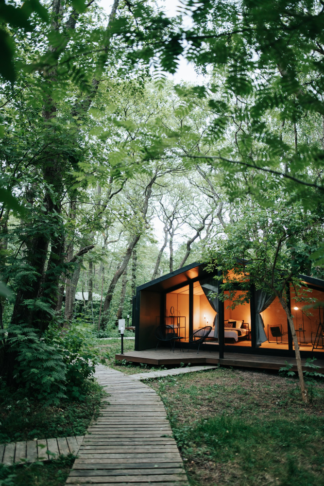 Расположен на первой линии моря у прекрасного песчаного пляжа, в реликтовом лесу Куршской косы. Бунгало гармонично вписаны в первозданную природу национального парка, создавая атмосферу комфорта и уединенности. В пешей доступности находятся прогулочные зоны, бары и рестораны курортного поселка Лесной.