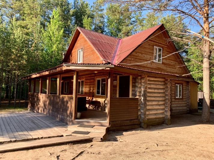 Домик расположен на территории базы отдыха, в живописном месте, окружённом лесом и на берегу реки.