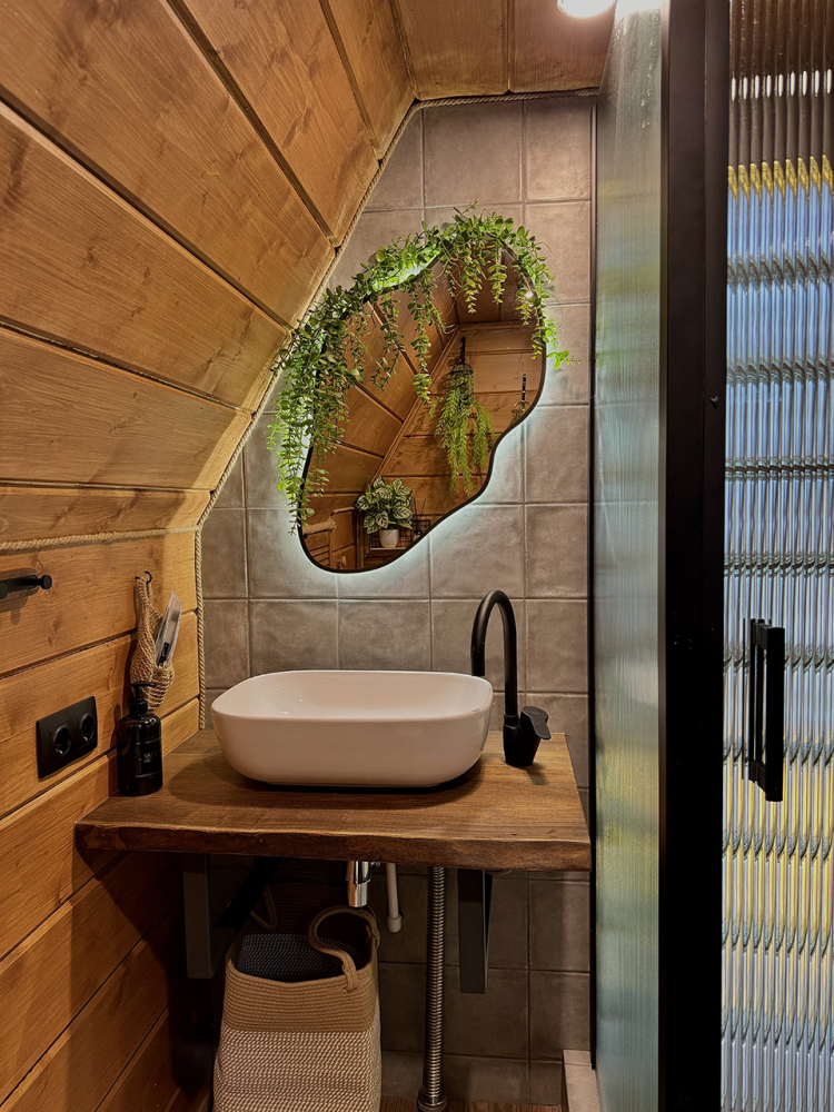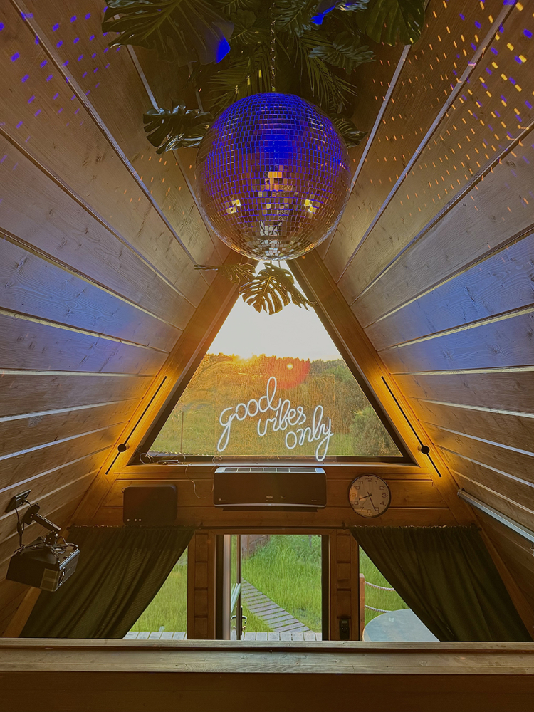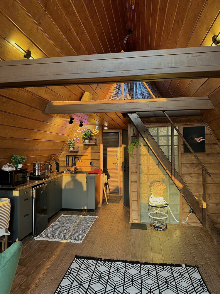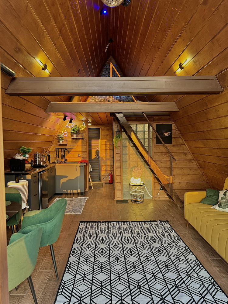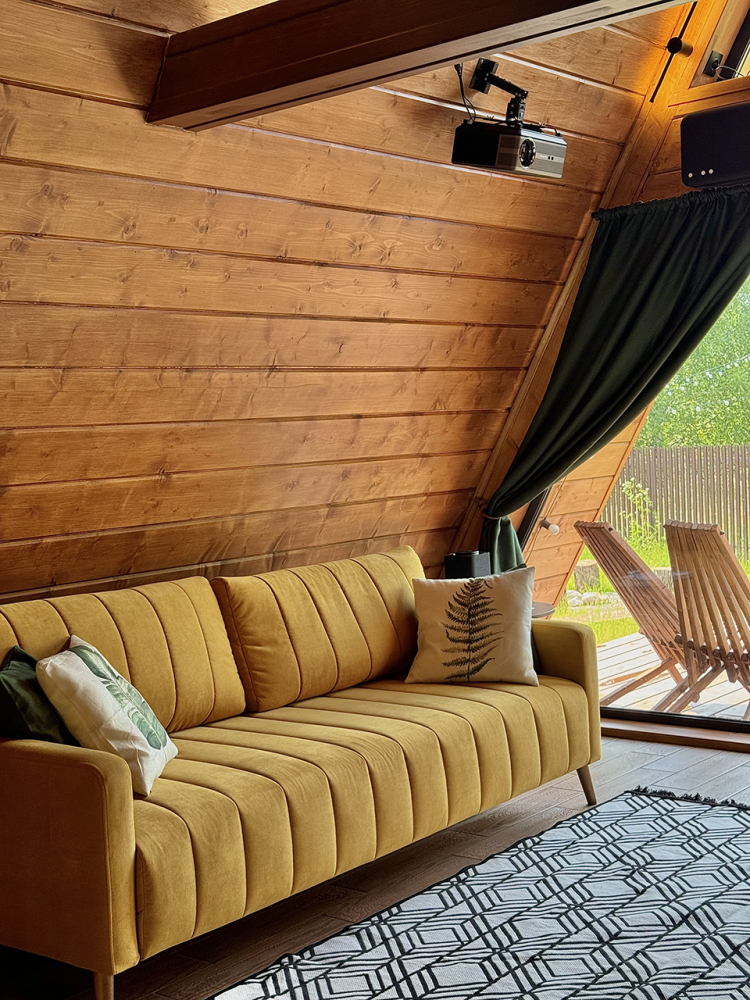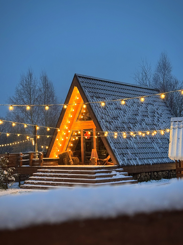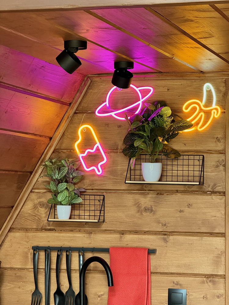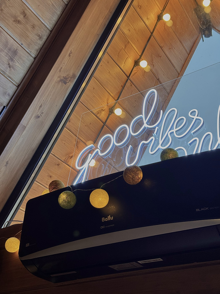Абсолютно новый A-фрейм дом в стиле неоновых джунглей, выполненный в тёмных тонах с уникальными элементами декора: диско-шаром, цветными софитами, неоновыми вывесками и тропической зеленью. На просторной террасе расположена деревянная купель из сибирской лиственницы, а территория дома включает беседку, костровую и мангальную зоны.