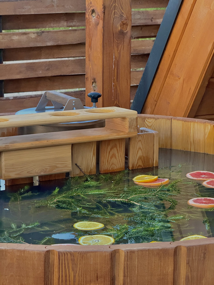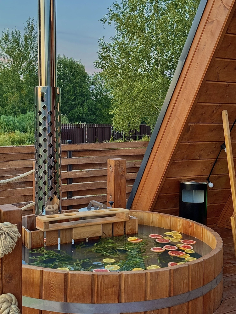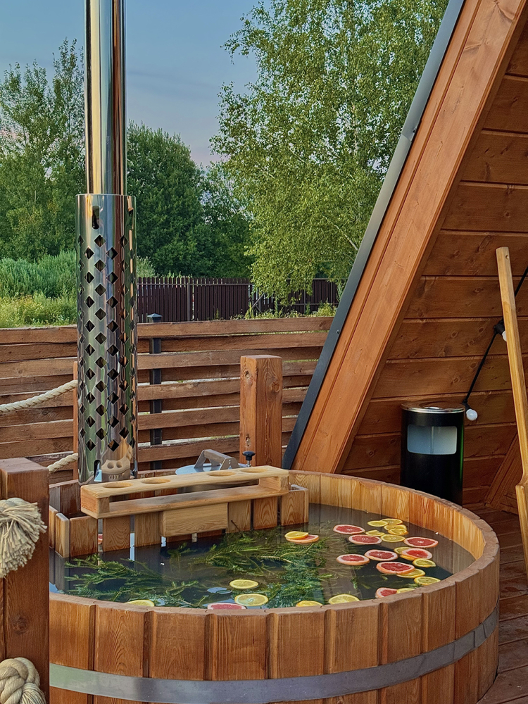 Купель на 3-4 человека с возможностью оформления еловыми ветками и цитрусами (дополнительно).