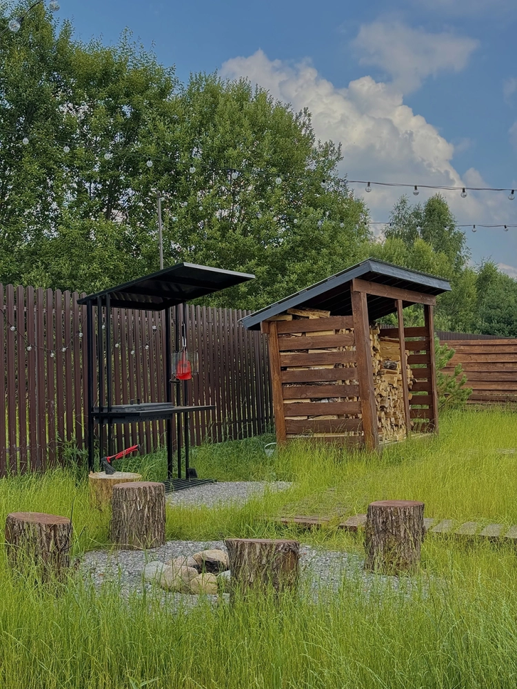Мангальная зона и дрова для костровой зоны.