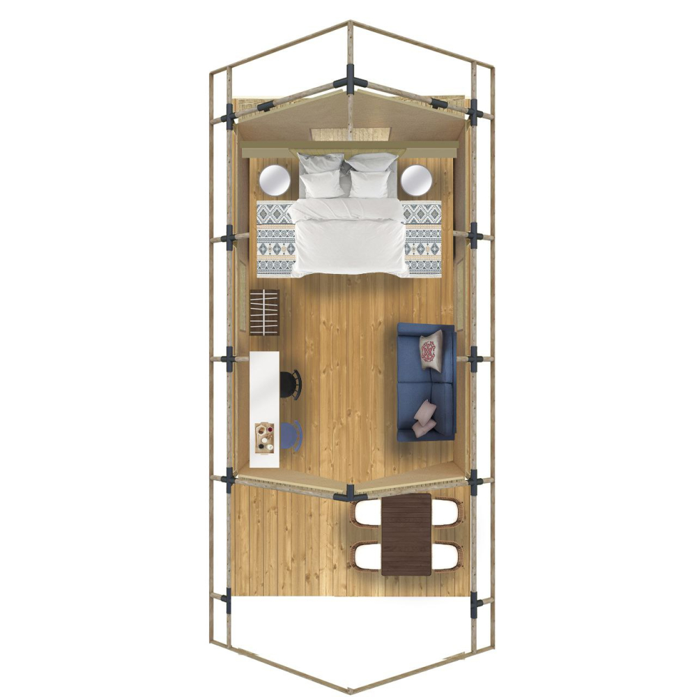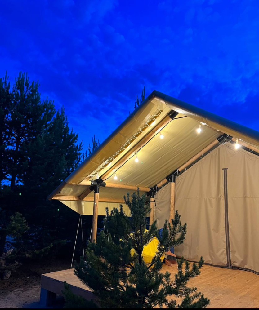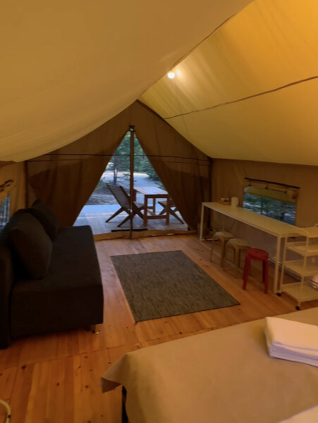 Сафари: Тент для полного погружения в природу, площадь 24 кв.м., терраса 6 кв.м., до 3 взрослых и 1 ребёнка.