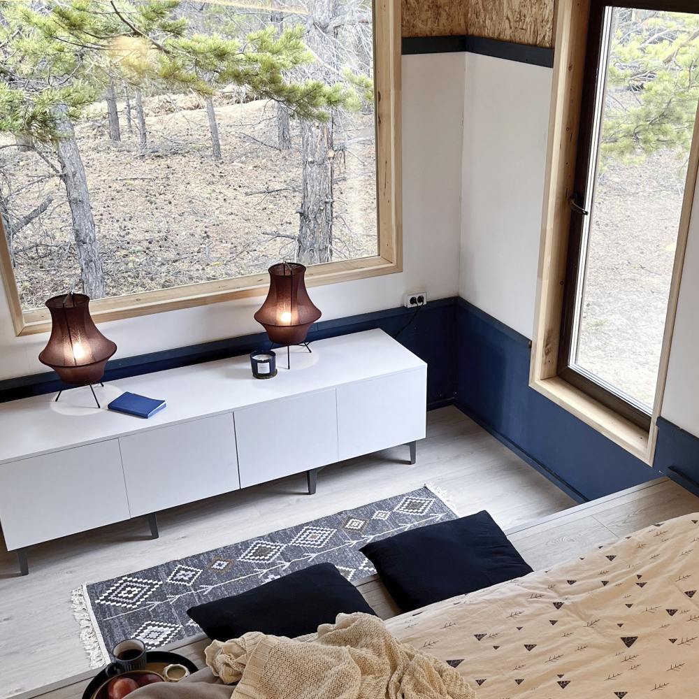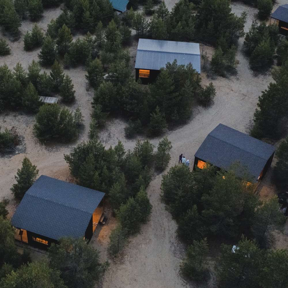 Домики: дизайнерские, с панорамными окнами и террасами.