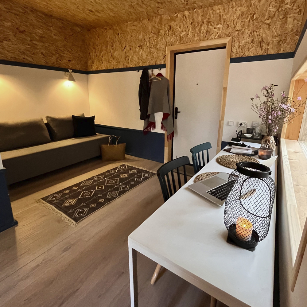 Комфорт: Стильный домик, площадь 30 кв.м., терраса 10 кв.м., до 3 взрослых и 1 ребёнка.