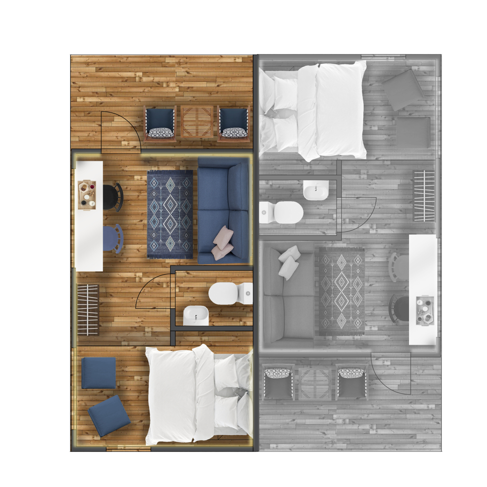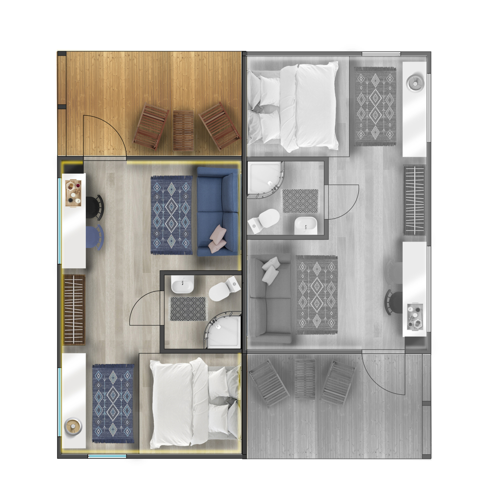 - Каждый домик или сафари-тент обеспечивает уют, приватность и захватывающий вид на природу. Номера, встроенные в ландшафт, расположены так, чтобы сохранить атмосферу покоя и тишины.