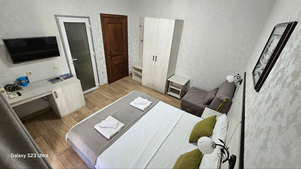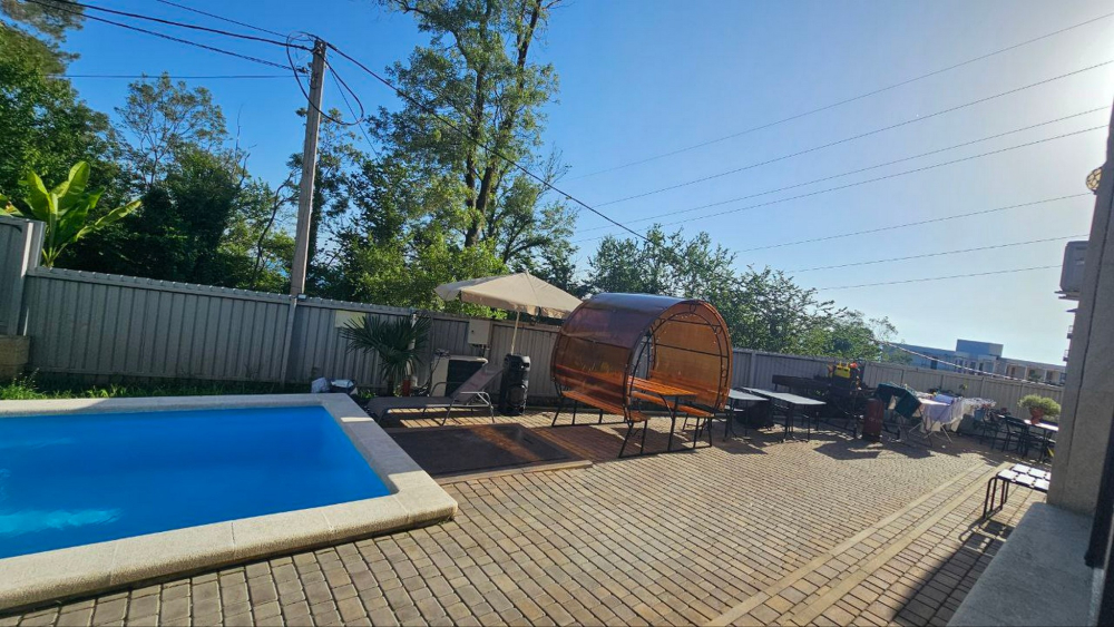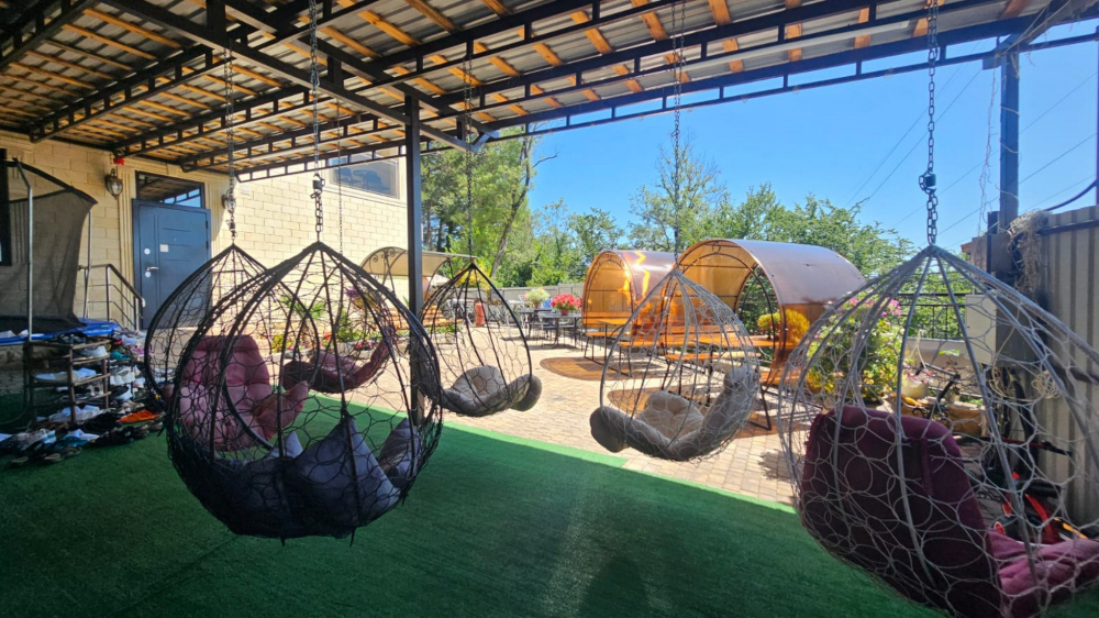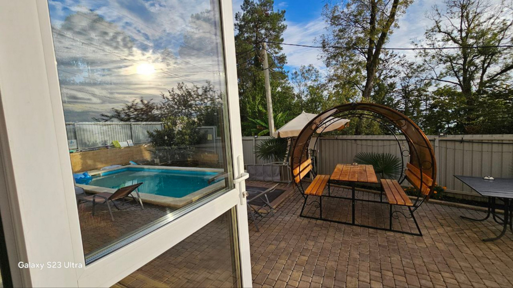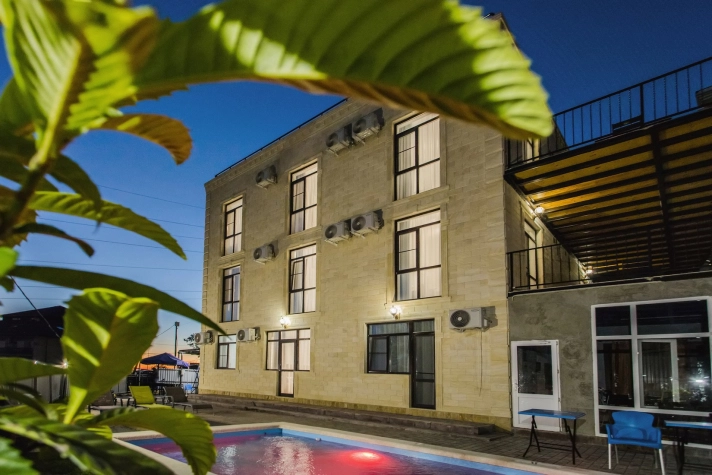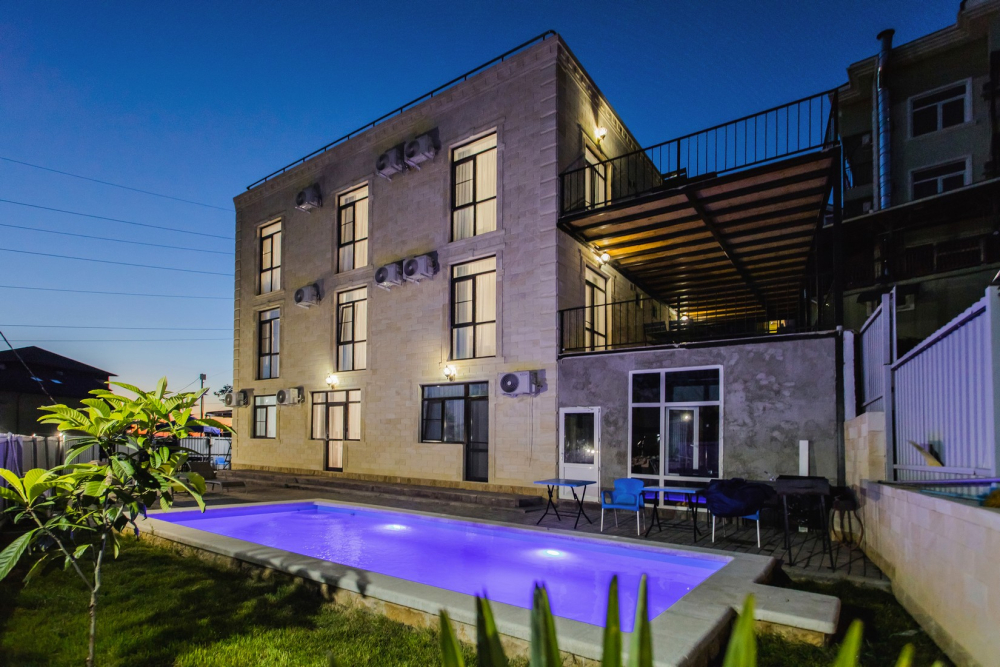 В номерах есть всё необходимое для комфортного проживания: кондиционер, холодильник, телевизор, фен, прикроватные светильники, плечики, тапочки, халаты. На территории Дома бассейн с подсветкой и подогревом, батут, теннисный стол, спортивный инвентарь (мячи, скакалки), беседки, мангальная зона. Гостям также предлагается кухня для самостоятельного приготовления пищи, оснащённая всей необходимой кухонной посудой. Изюминка нашего Дома — смотровая площадка на крыше, где вы можете любоваться рассветами и закатами. В шаговой доступности вся инфраструктура: магазины, столовые, рынки.