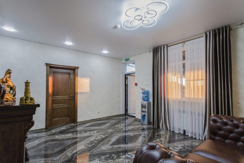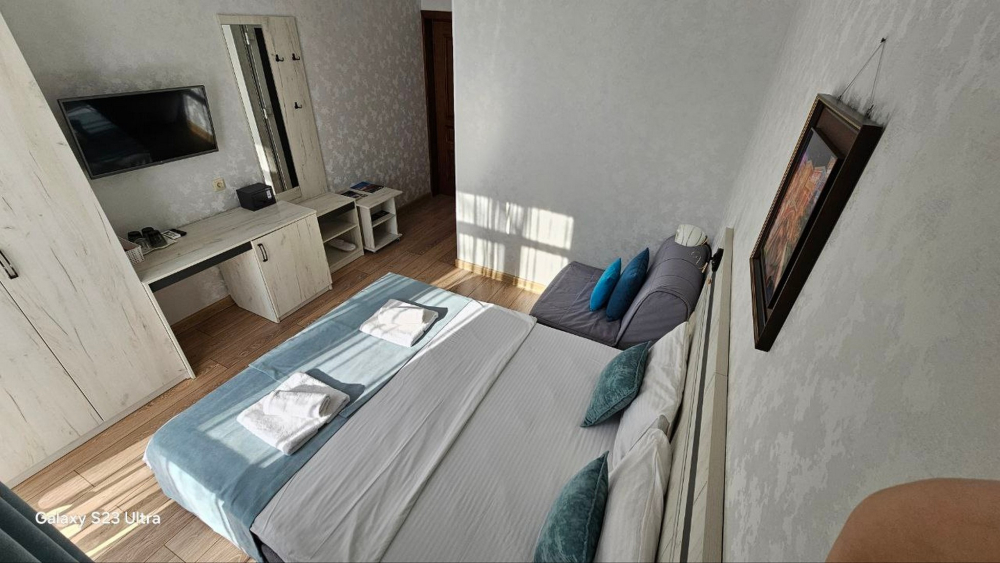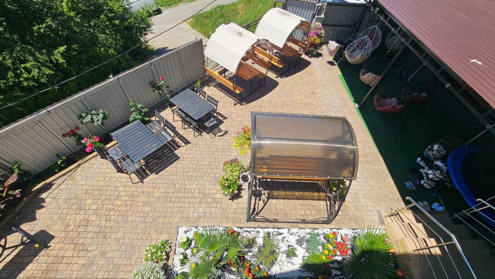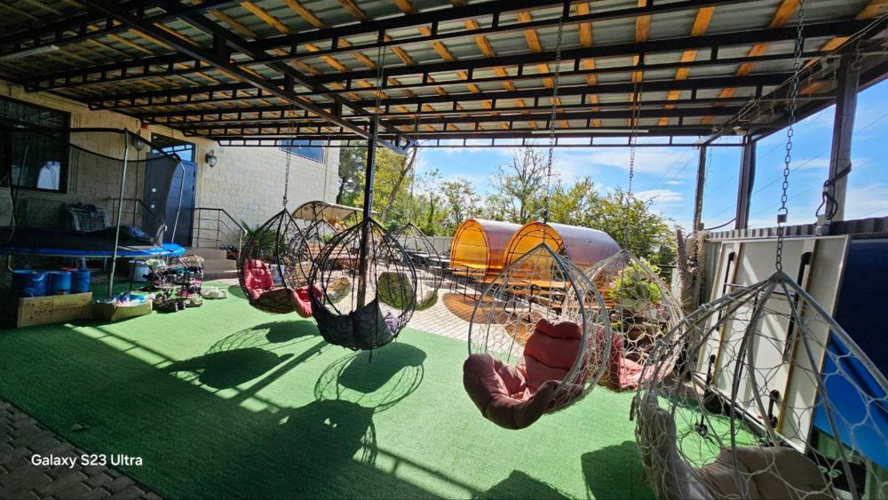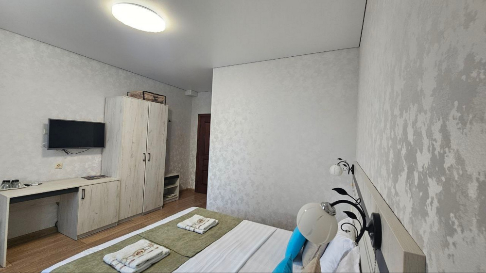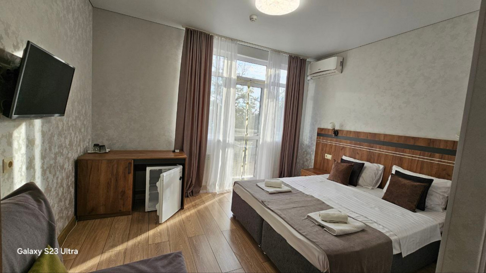 В номерах есть всё необходимое для комфортного проживания: кондиционер, холодильник, телевизор, фен, прикроватные светильники, плечики, тапочки, халаты. На территории Дома бассейн с подсветкой и подогревом, батут, теннисный стол, спортивный инвентарь (мячи, скакалки), беседки, мангальная зона. Гостям также предлагается кухня для самостоятельного приготовления пищи, оснащённая всей необходимой кухонной посудой. Изюминка нашего Дома — смотровая площадка на крыше, где вы можете любоваться рассветами и закатами. В шаговой доступности вся инфраструктура: магазины, столовые, рынки.