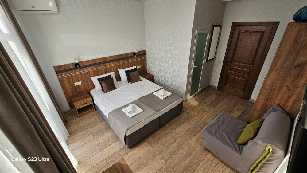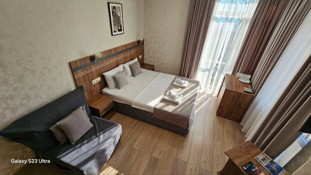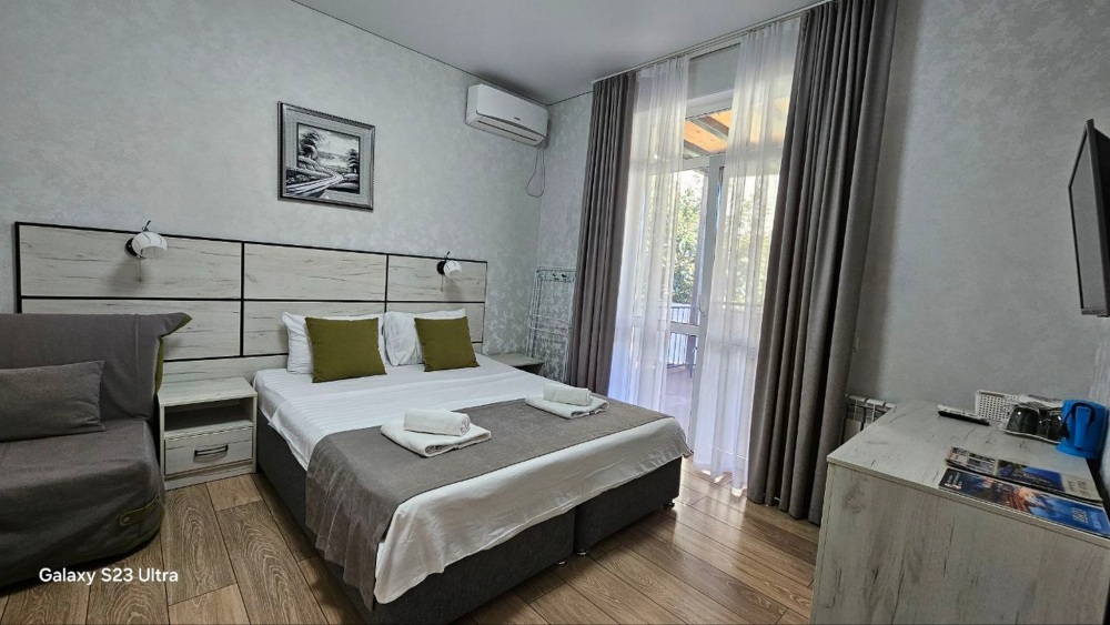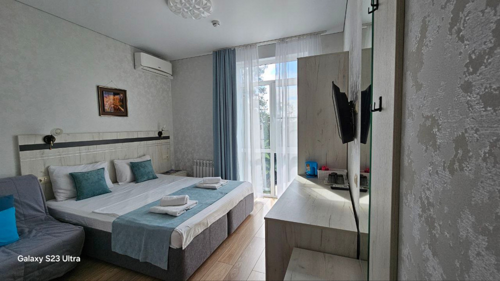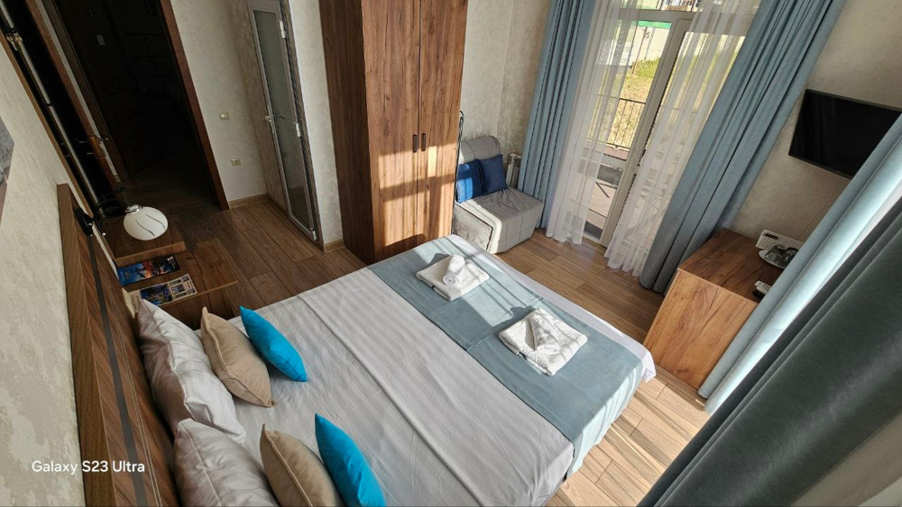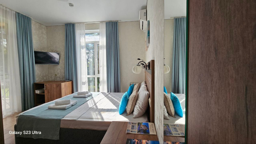 Наш дом расположен в исключительном месте побережья ЛОО. С трех сторон вас окружают разные стихии: горный массив за домом, лес Сочинского национального парка слева и морская гладь в 300 метрах впереди. Современное здание 2021 года постройки гармонично вписано в этот уникальный природный ландшафт. Все номера категории Люкс с видами на море.