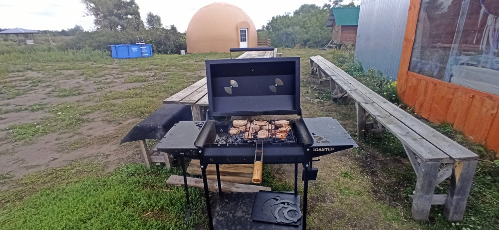 У домика есть собственная мангальная зона, идеально подходящая для приготовления блюд на открытом огне и уютных вечеров в кругу близких.
