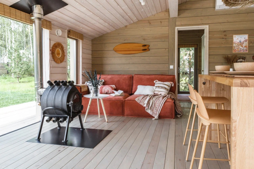 Для уютных вечеров дровяной камин в гостиной: отличный спутник для чтения книги, размышлений или игр в настольные игры.