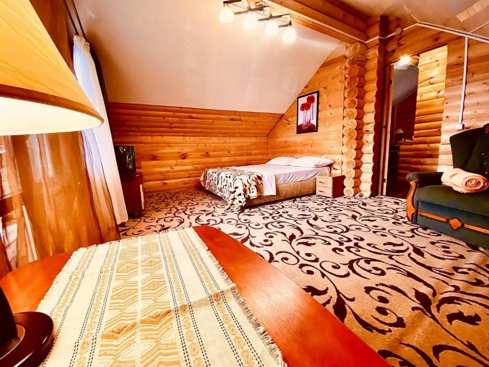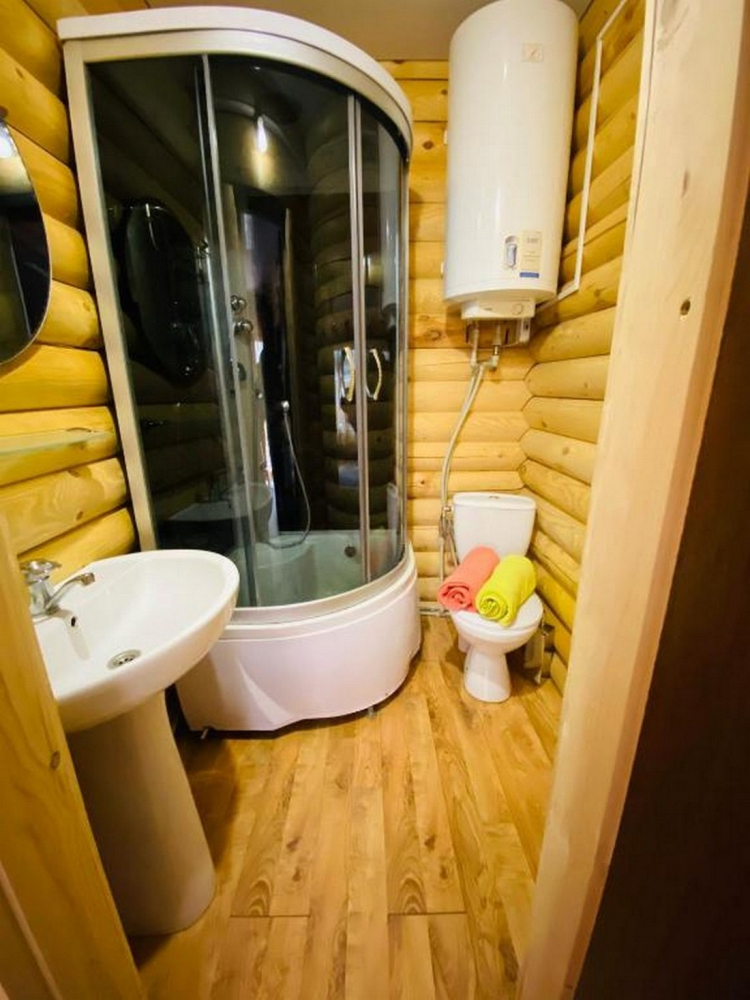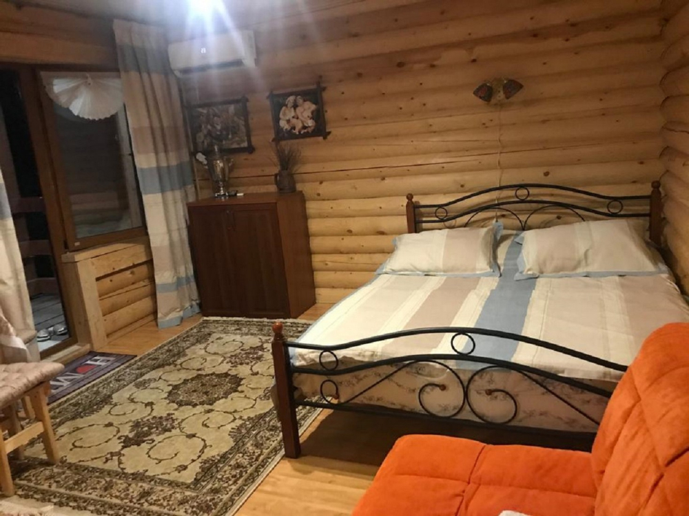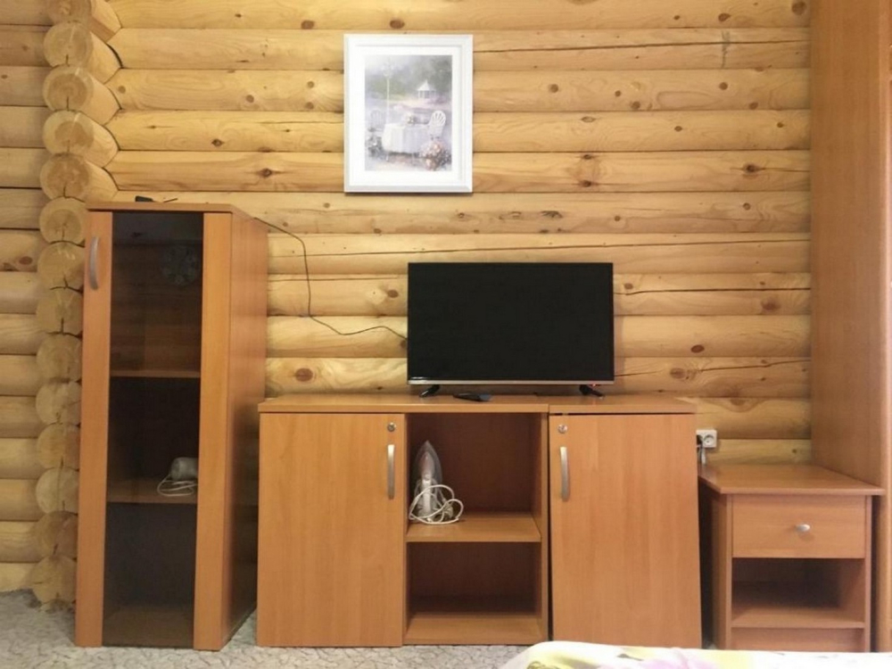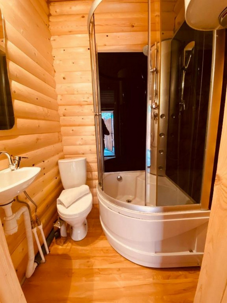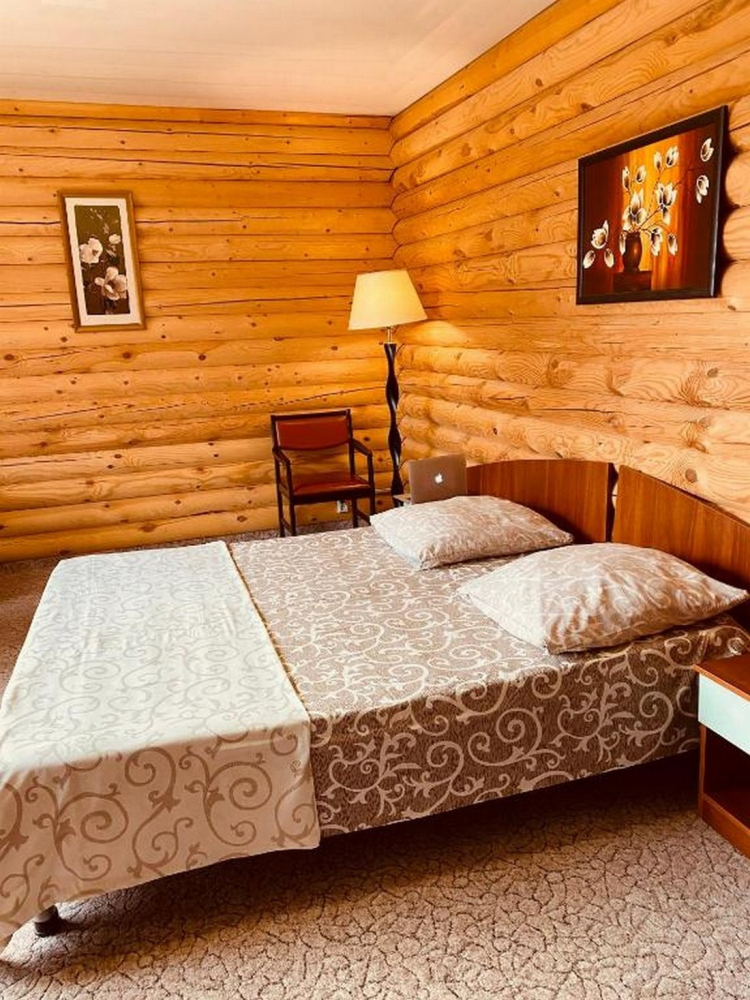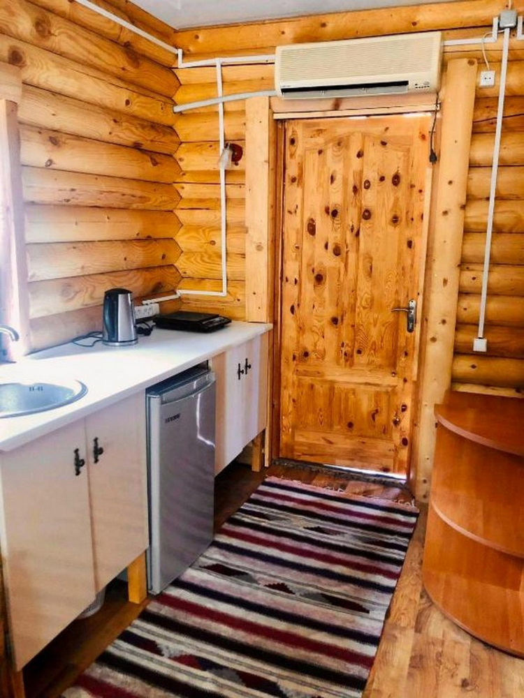 Номера представлены в виде однокомнатных и двухкомнатных срубов.