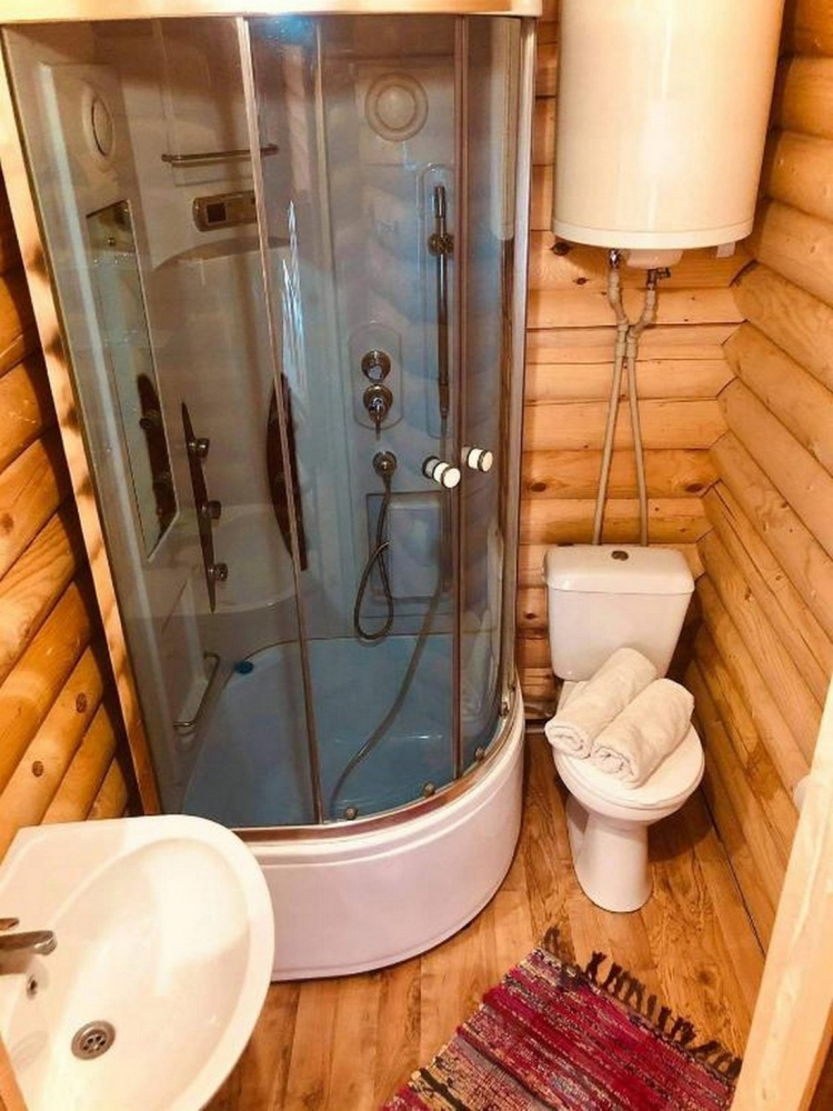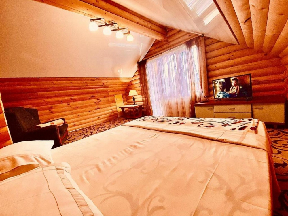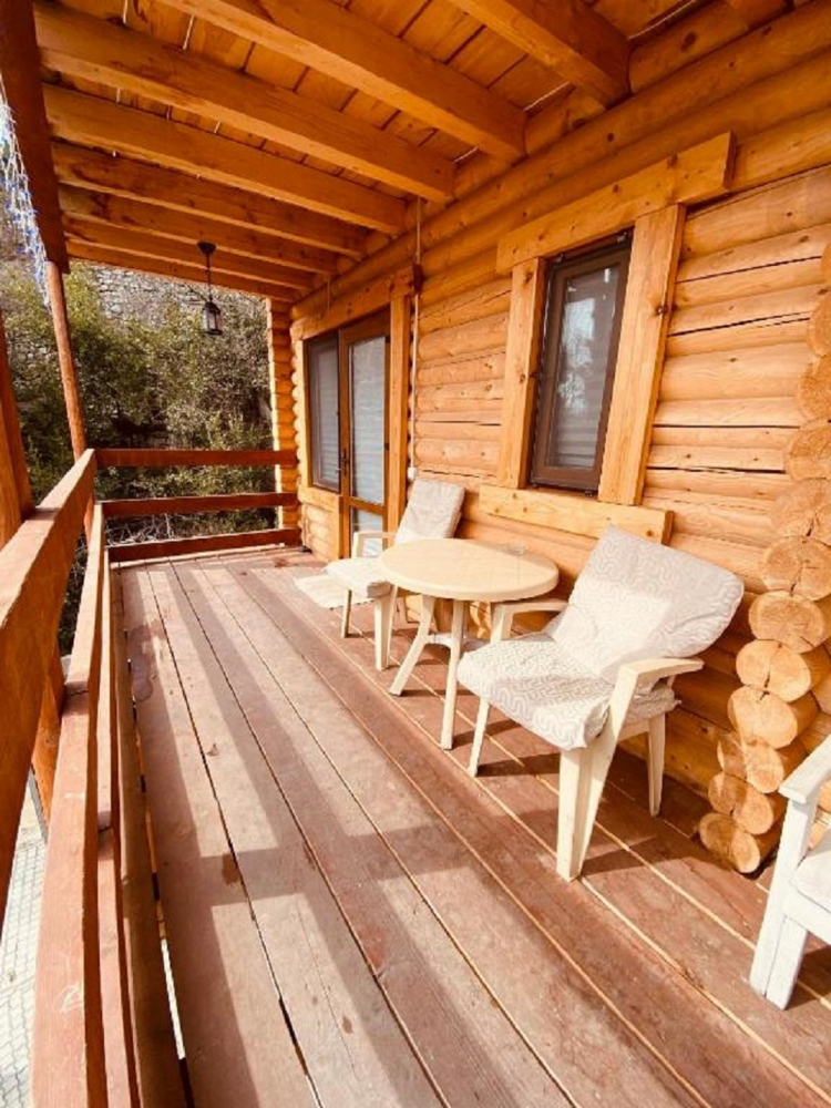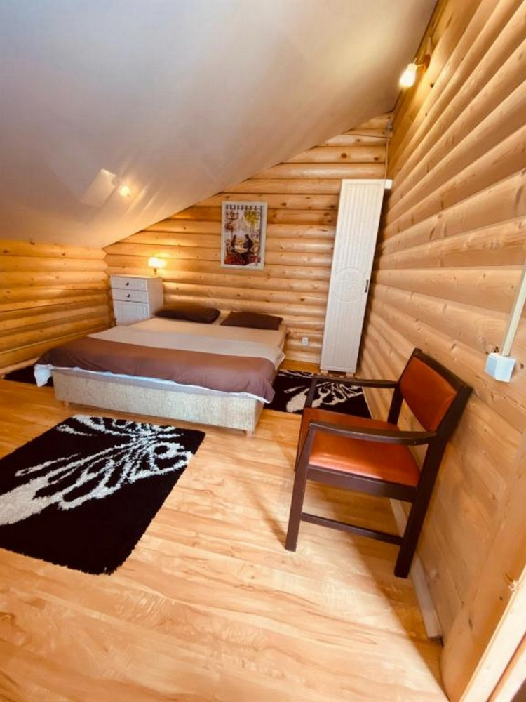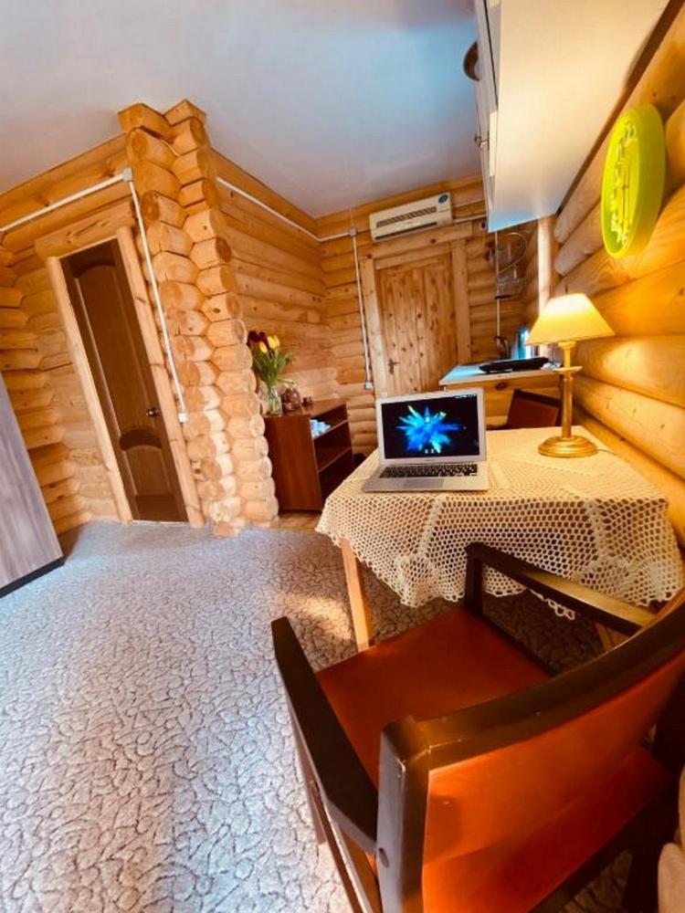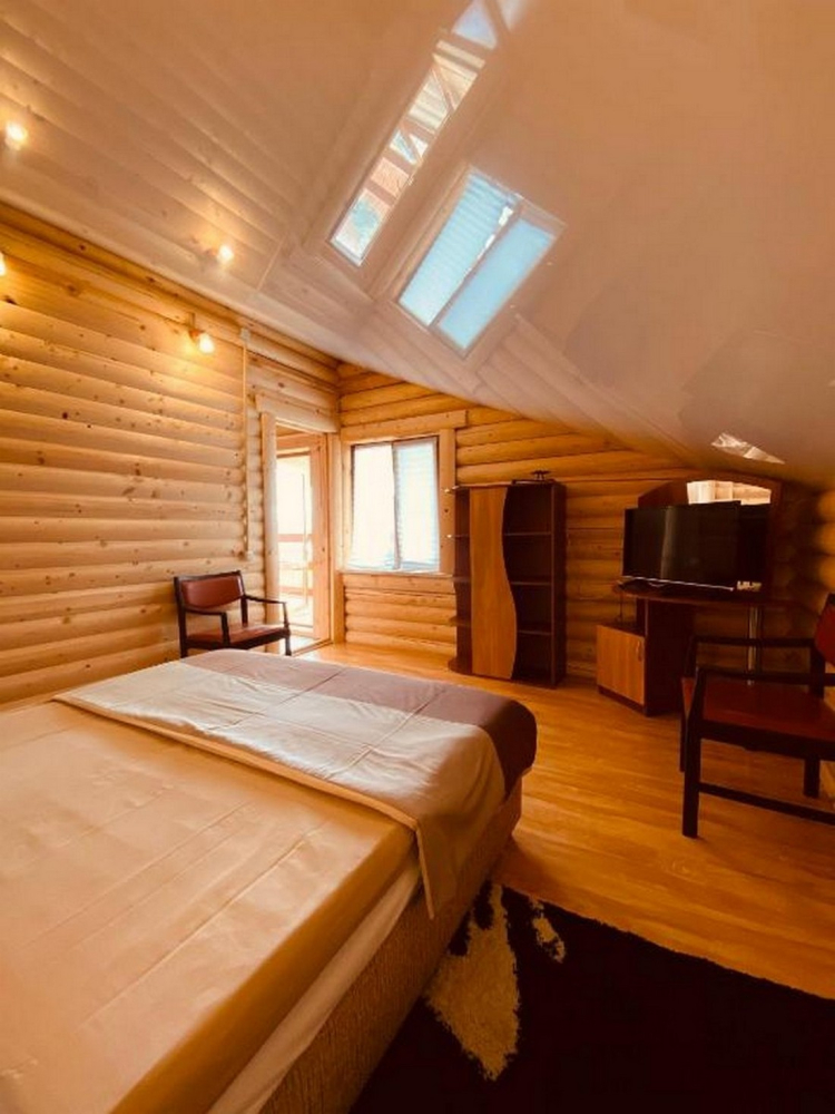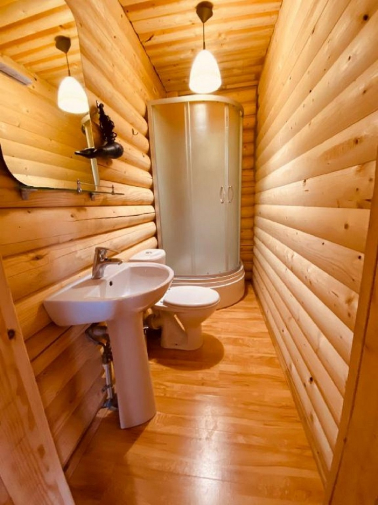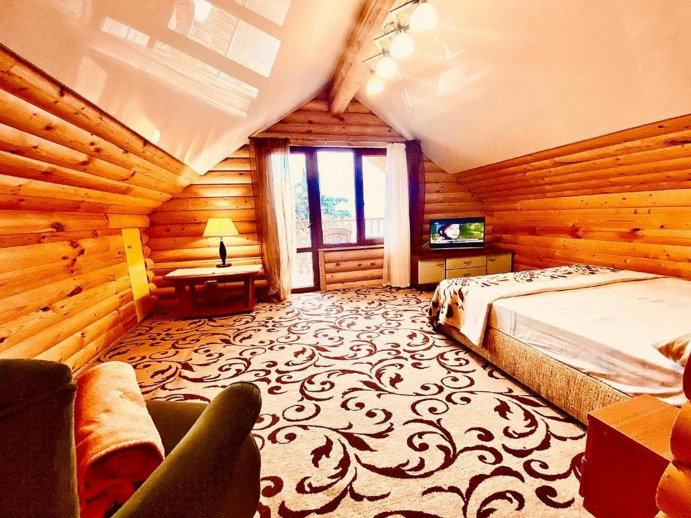 Номера представлены в виде однокомнатных и двухкомнатных срубов.