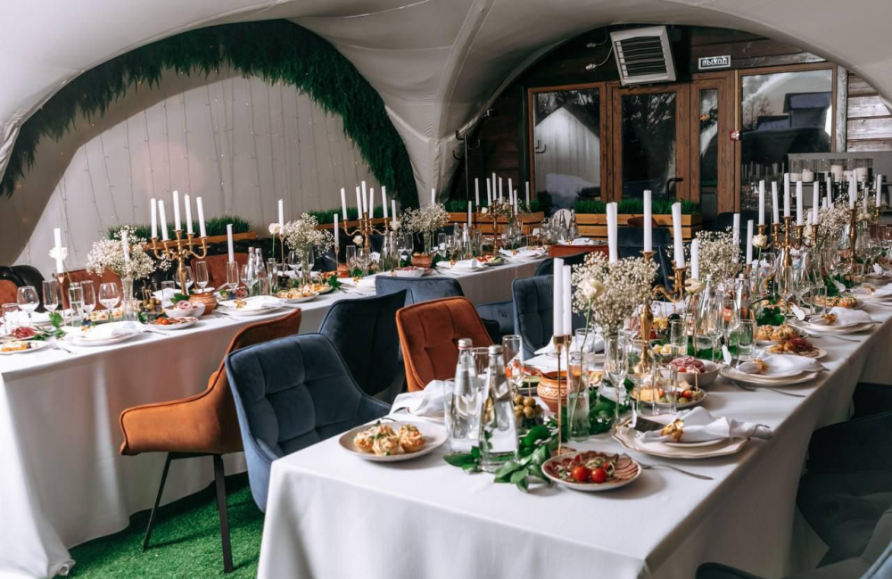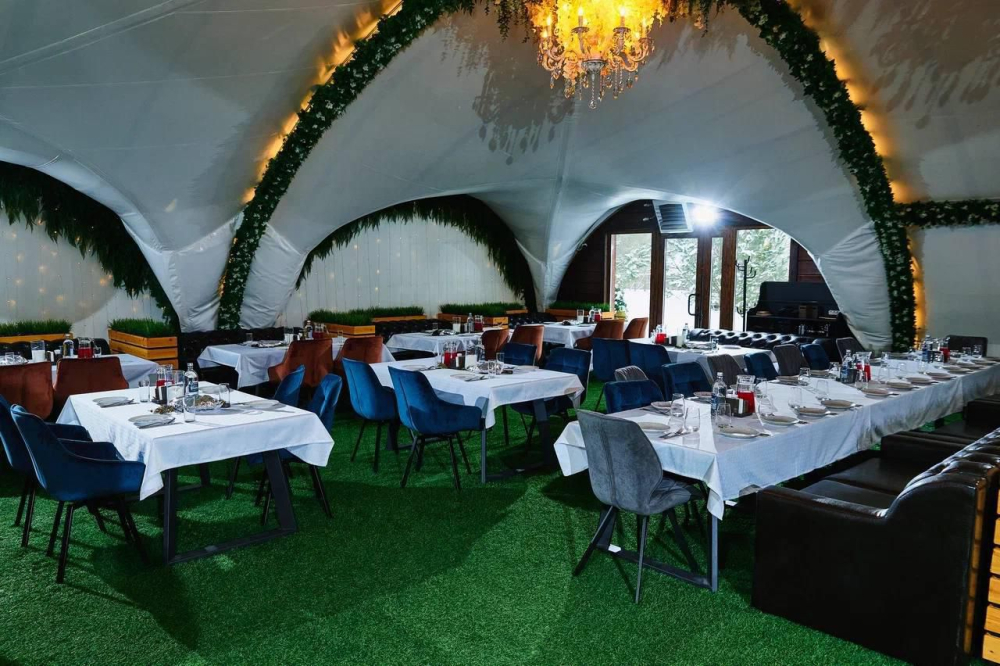 Аренда шатра нашего ресторана идеально подходит для проведения мероприятий, банкетов и дней рождения; ресторан предоставляется под закрытие с 10:00 до 23:00, стоимость аренды составляет 100 000 ₽ в будние дни и 150 000 ₽ в выходные.