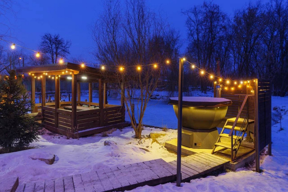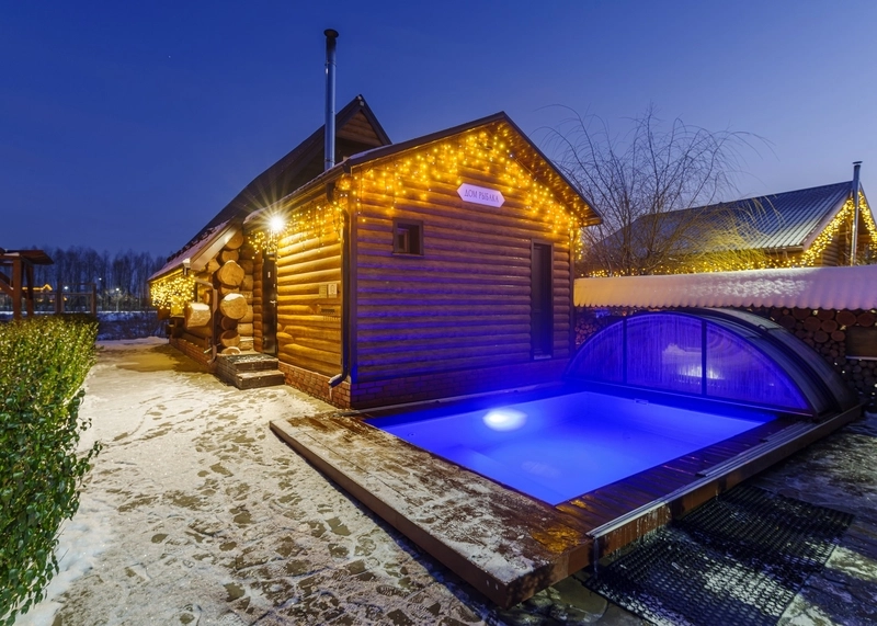 Всесезонный тёплый бассейн на улице, входит в стоимость проживания