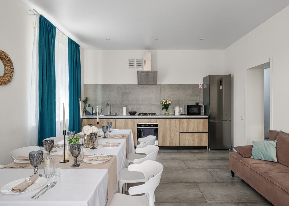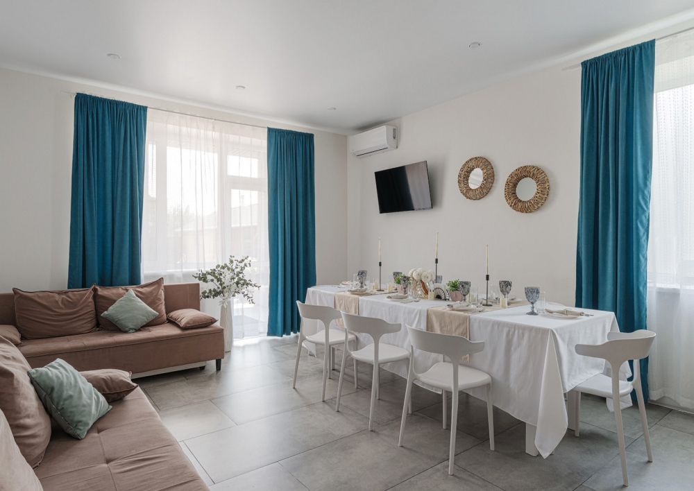 Гостиная: вместительная зона со столовой группой для больших компаний.