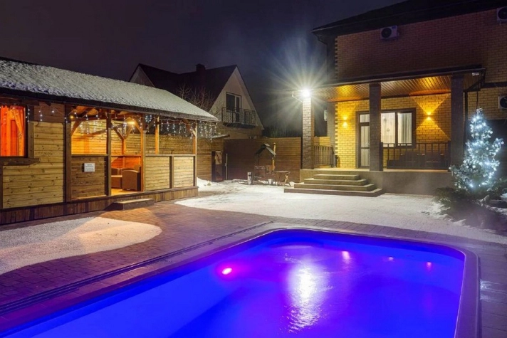 Почему стоит выбрать нас: Уютный коттедж с современным дизайном, уникальная атмосфера для отдыха, возможность воспользоваться удобствами, включающими баню и бассейн. Просторные помещения подойдут как для семейного отдыха, так и для встреч с друзьями.