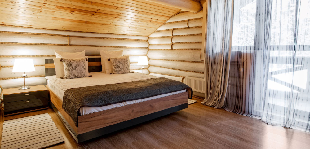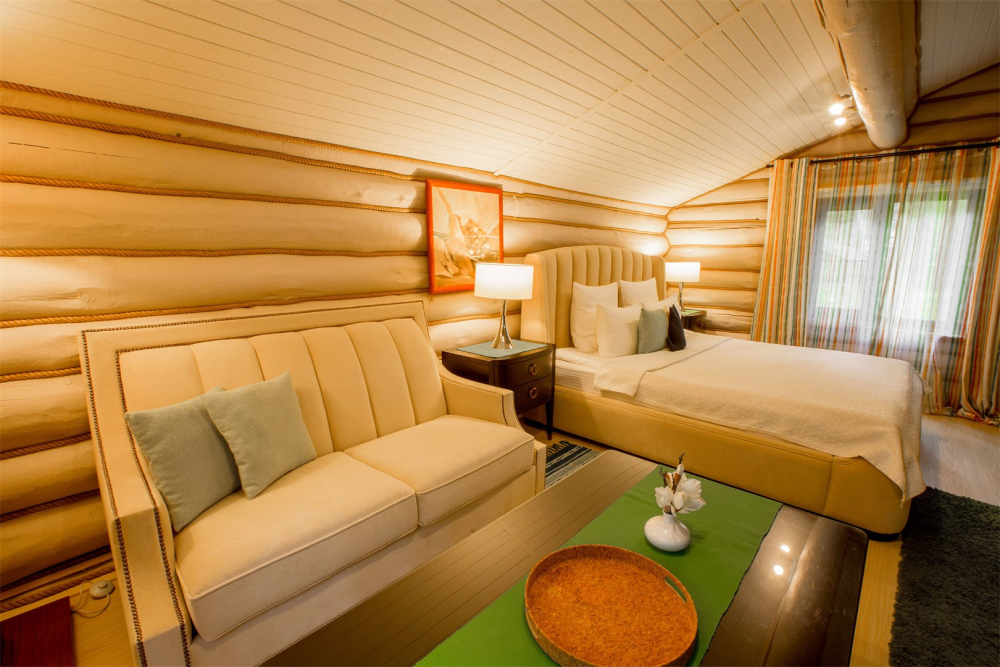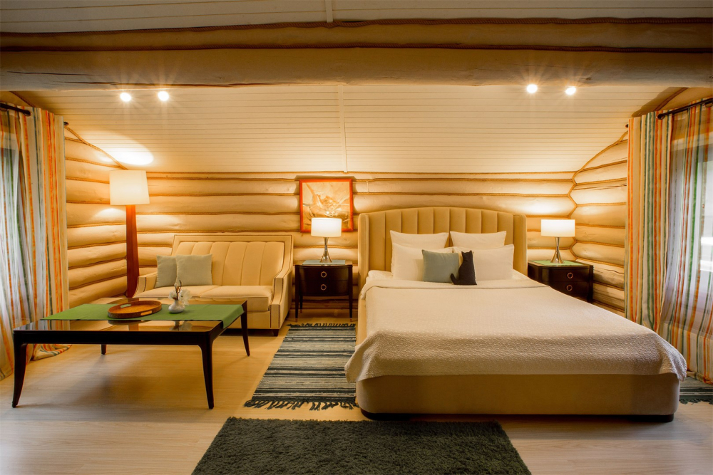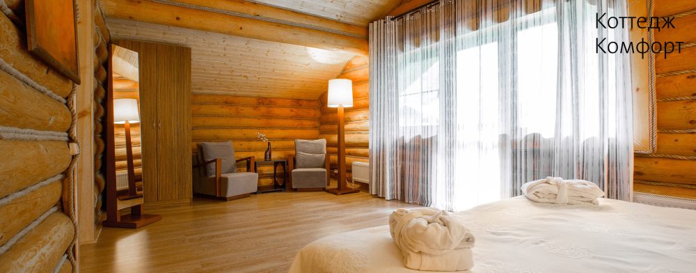 45 коттеджей различных категорий, выполненных из вручную обработанного северного леса.