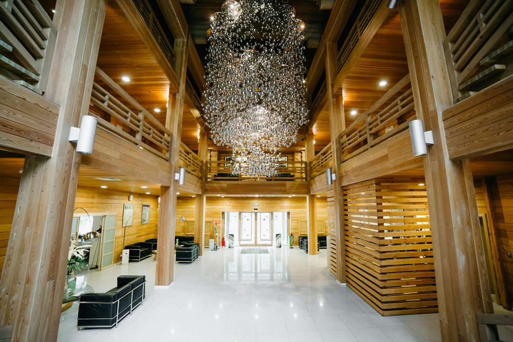 SPA-центр с хамамом, финской сауной, спа-кабинетами, тренажерным залом, массажными залами, стеклянной панорамной сауной, кедровыми чанами и банным комплексом.