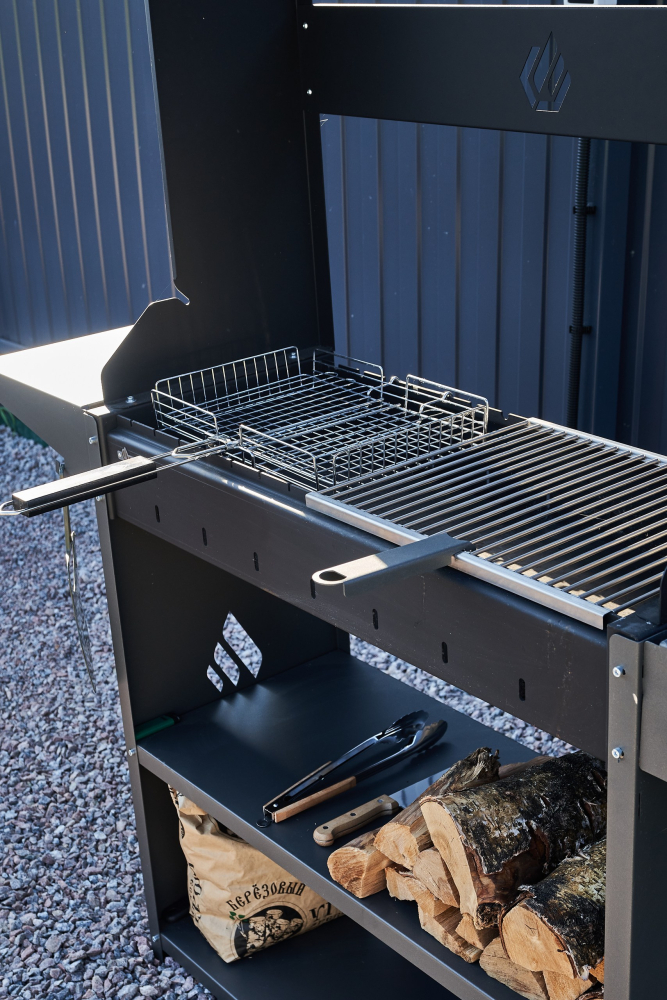 - Мангальная зона: шампур, решетка, дрова, уголь.
