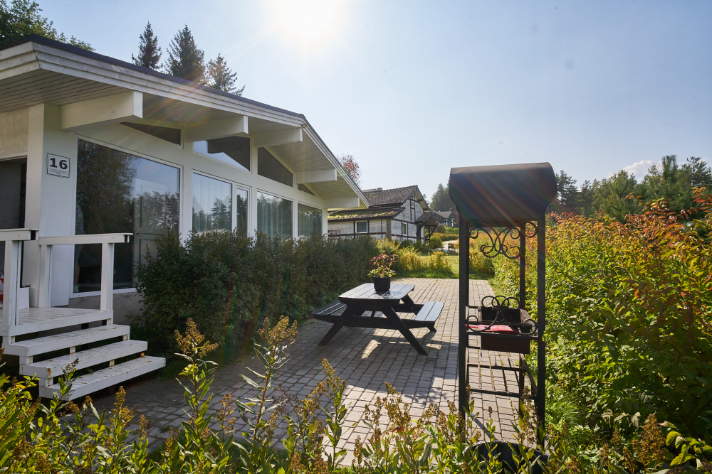 Мангальная зона есть около домиков Вилла с видом на сад, Вилла с террасой и видом на озеро.