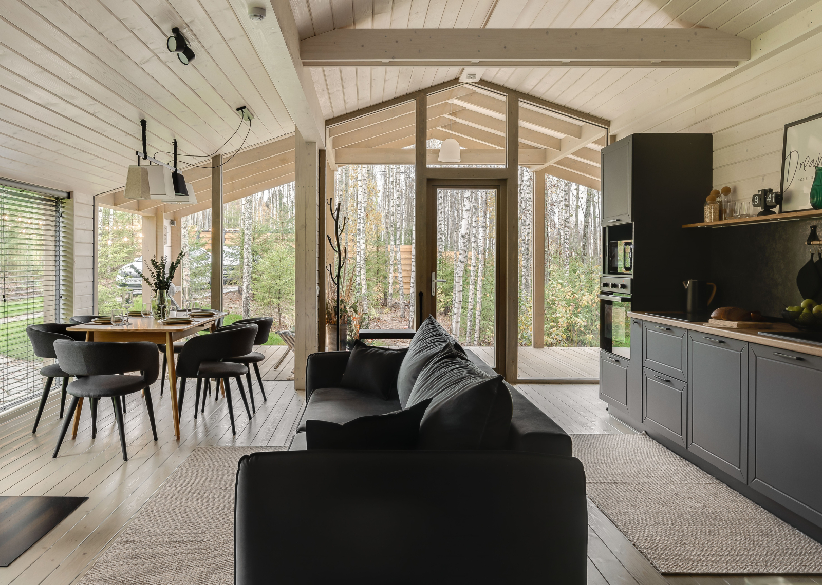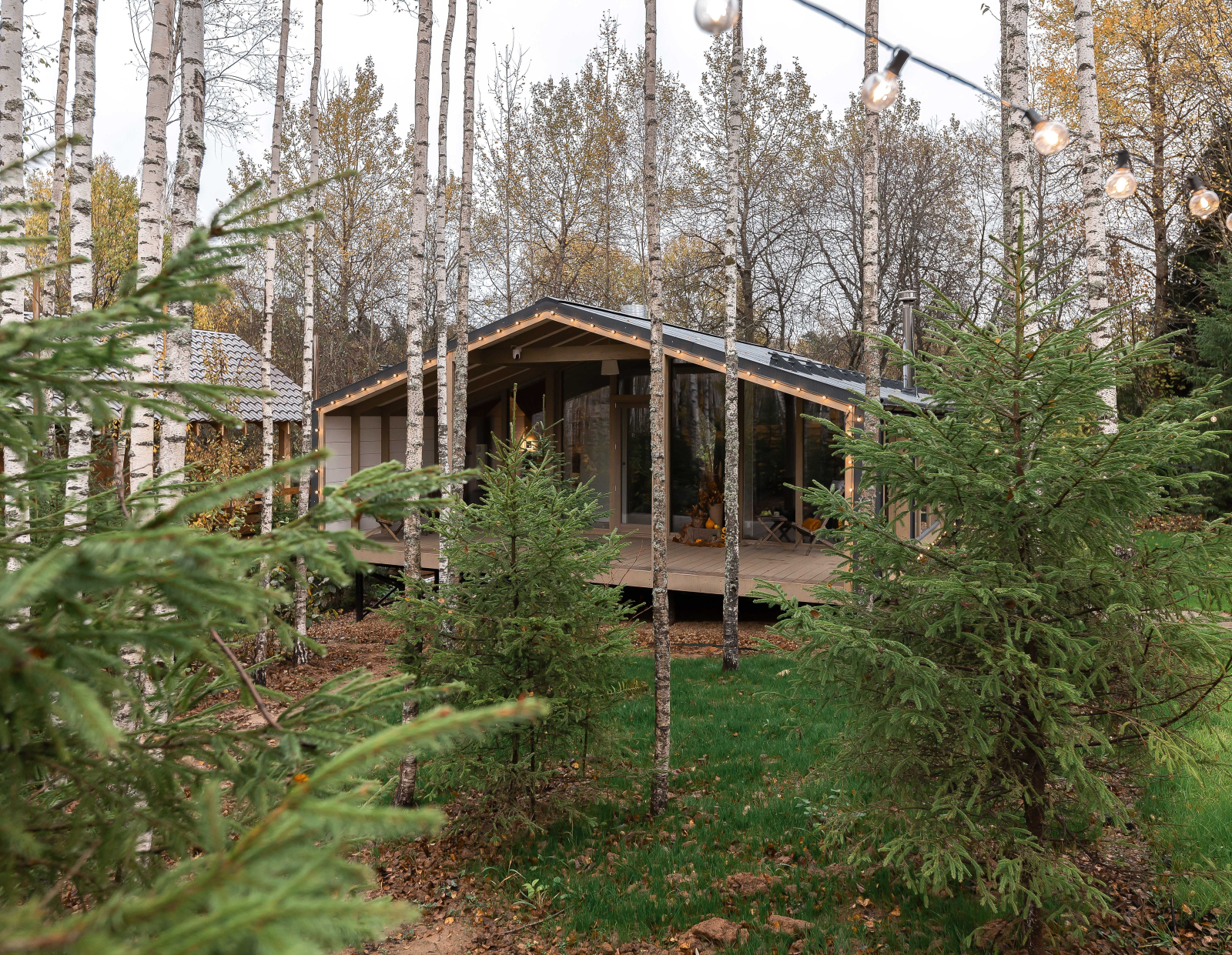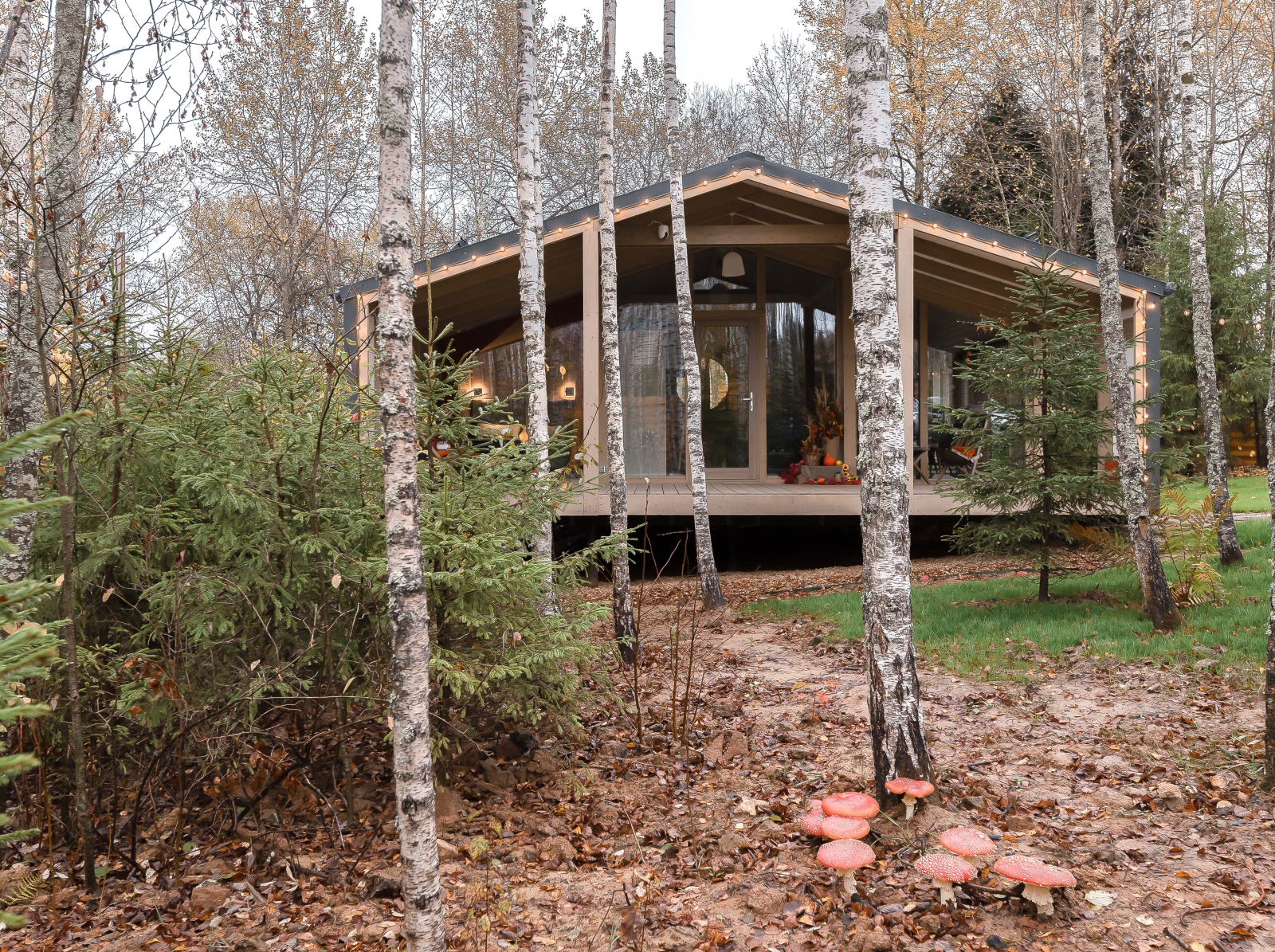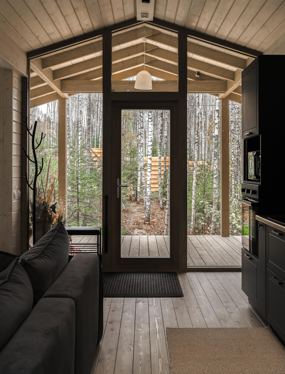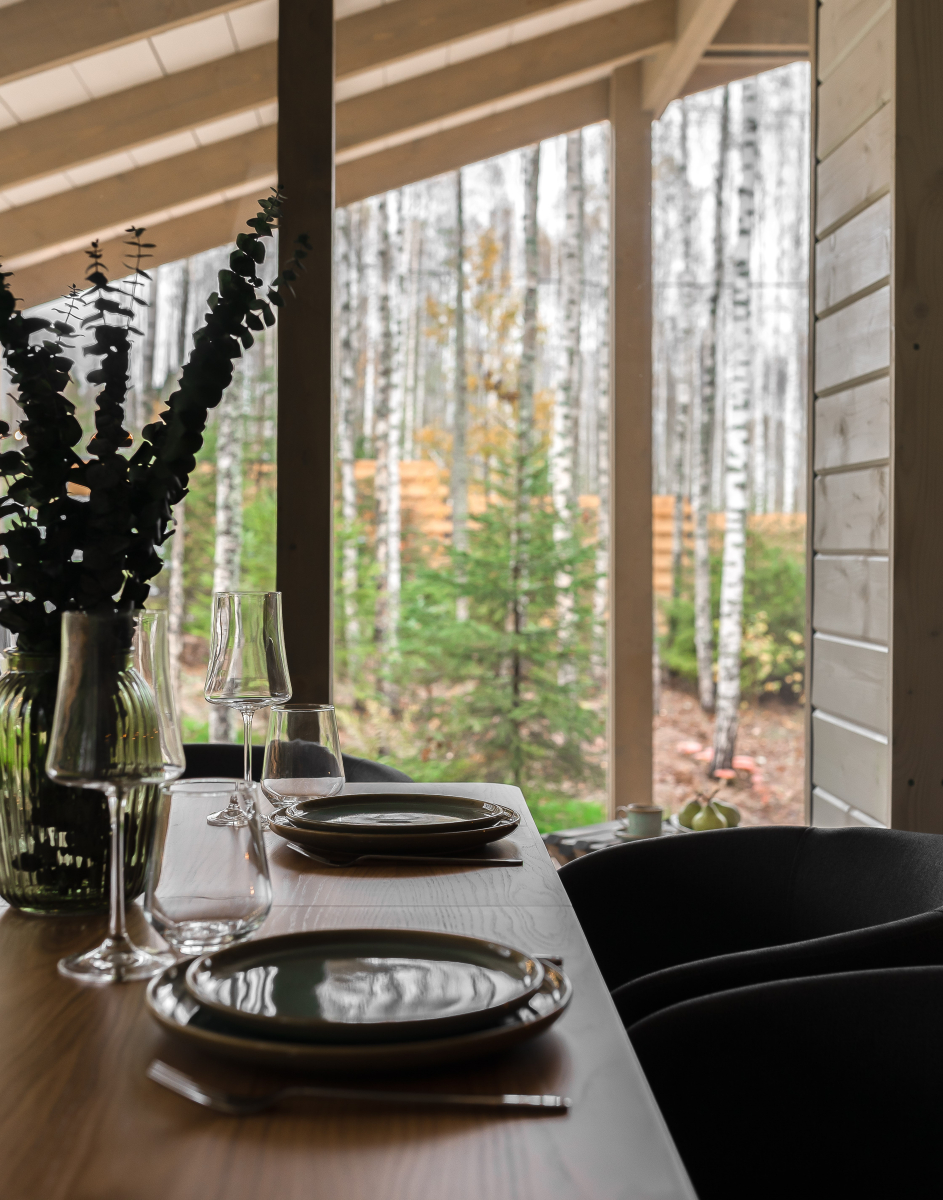 - Дом расположен в живописной лесной местности с панорамным видом на березовый лес и купель.