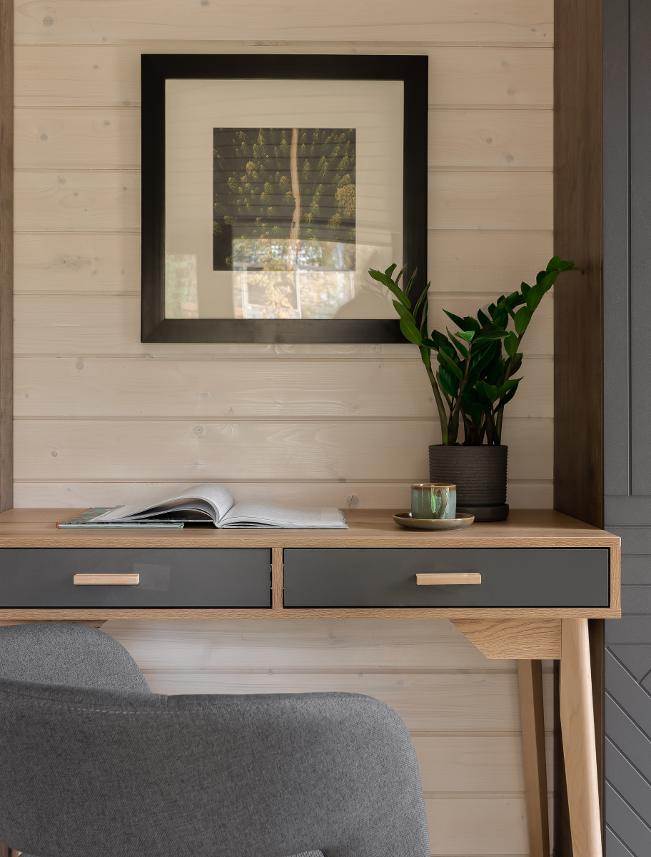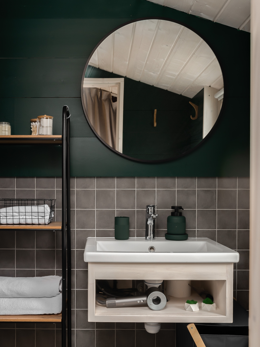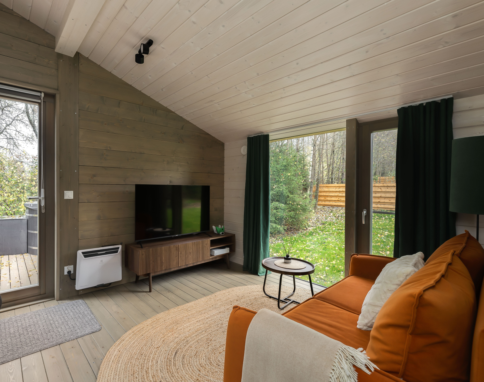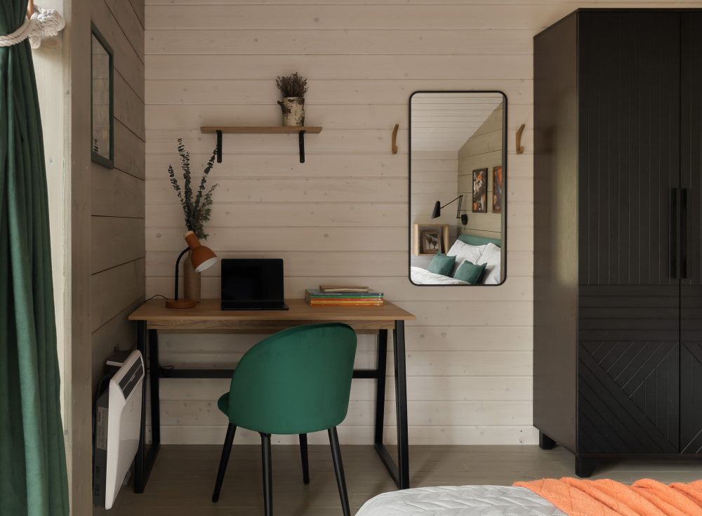 - Мастер-спальня: кровать 180х200, панорамное окно с видом на лес.