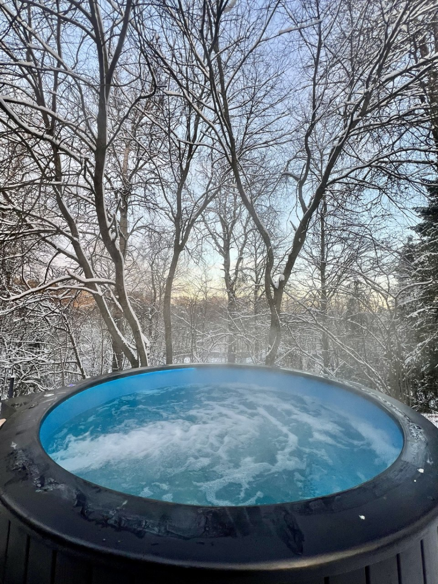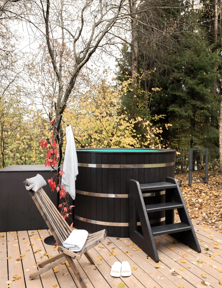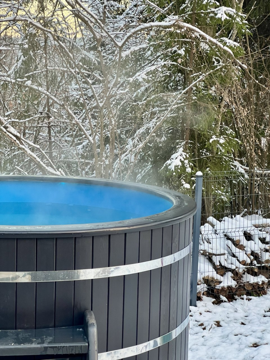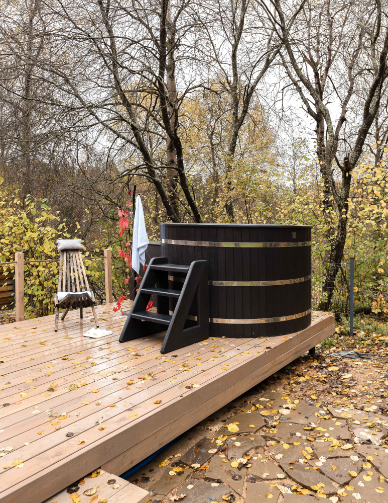 - Мини-бассейн с подогревом для 4 человек, идеально подходит для расслабления на свежем воздухе.