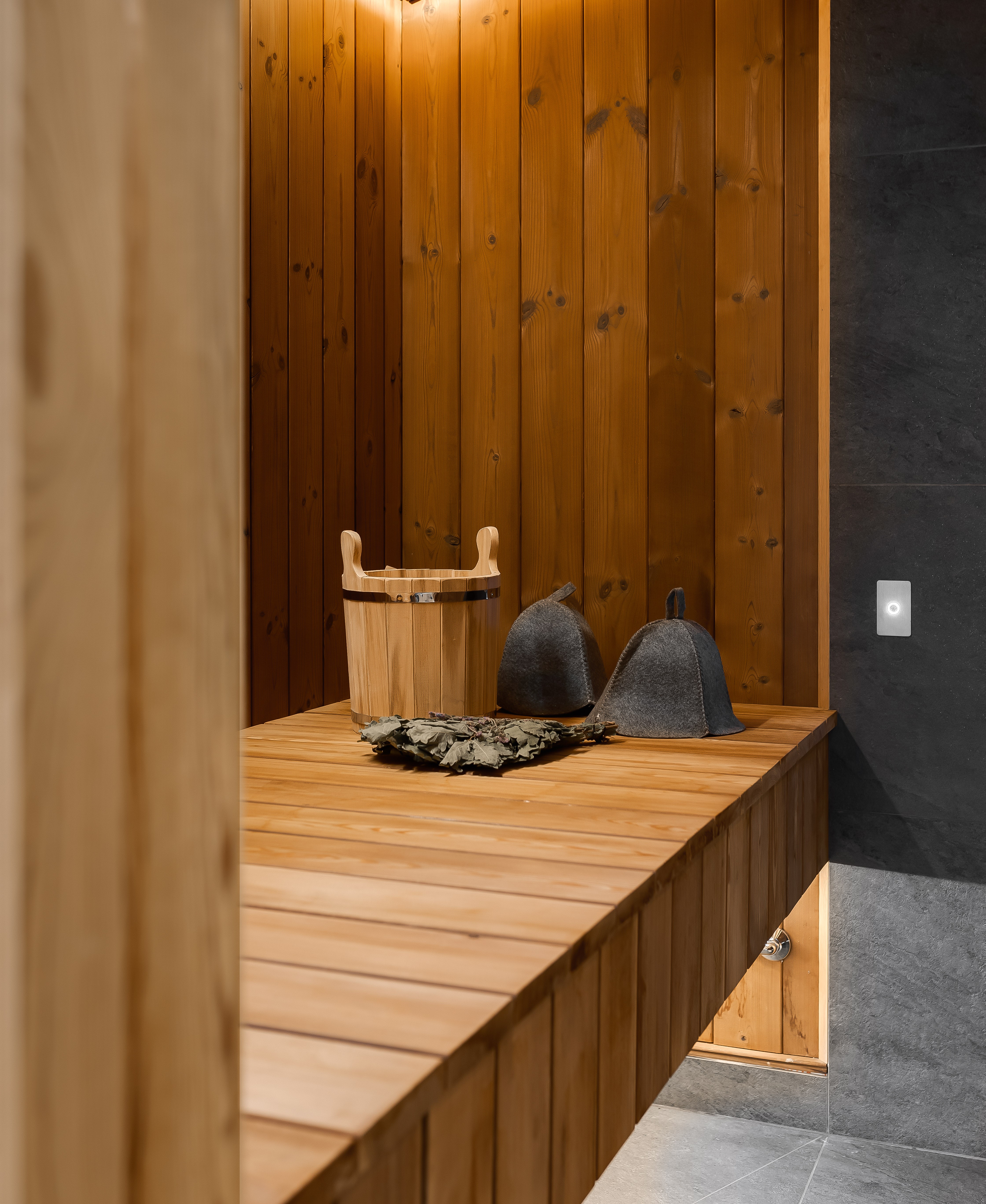 - в доме электрическая сауна SANGENS с несколькими режимами парения, а также большая купель на веранде в гостиной и каждой спальне установлены сплит-системы, которые охлаждают дом в жару и отапливают дом даже в очень сильные морозы