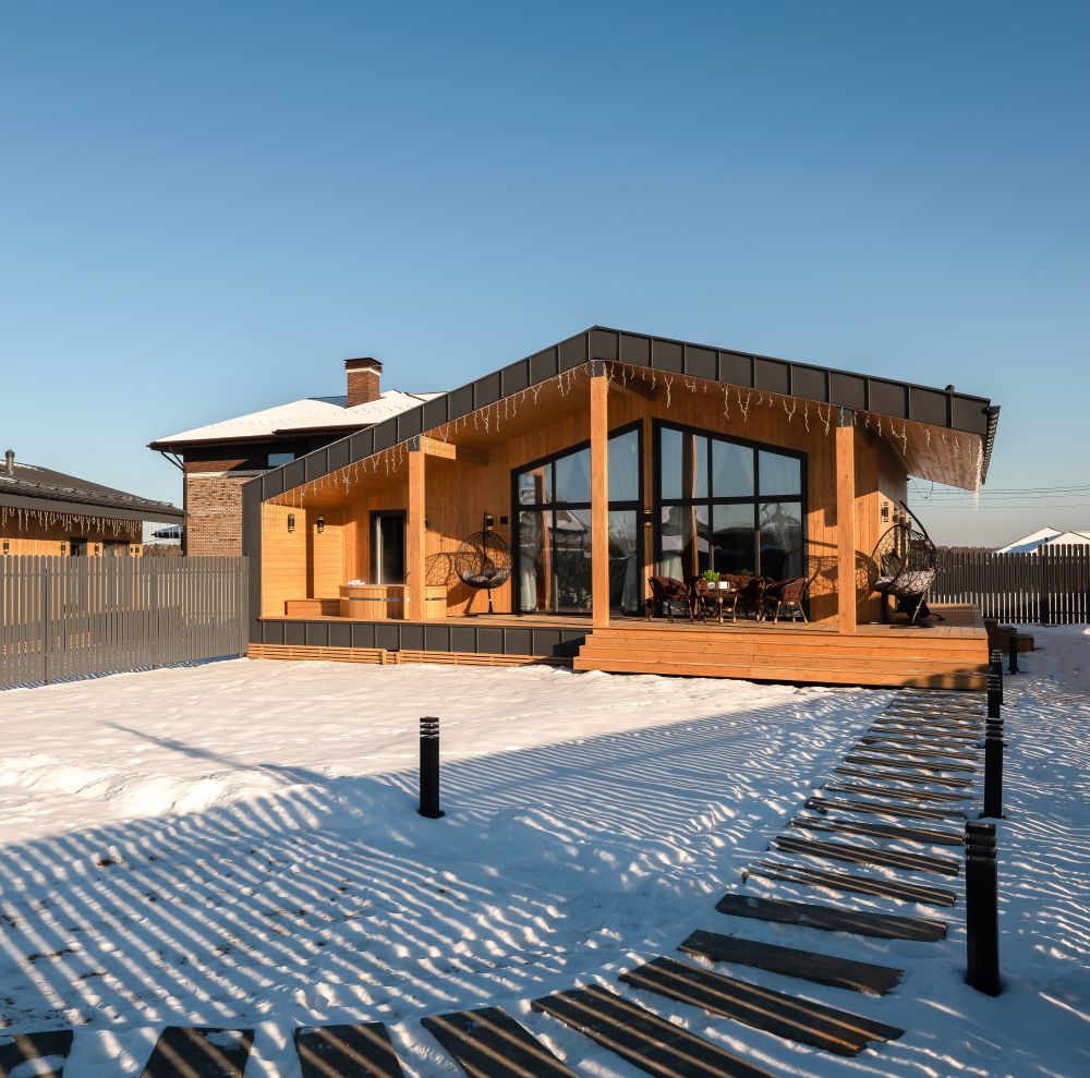 - в доме электрическая сауна SANGENS с несколькими режимами парения, а также большая купель на веранде в гостиной и каждой спальне установлены сплит-системы, которые охлаждают дом в жару и отапливают дом даже в очень сильные морозы