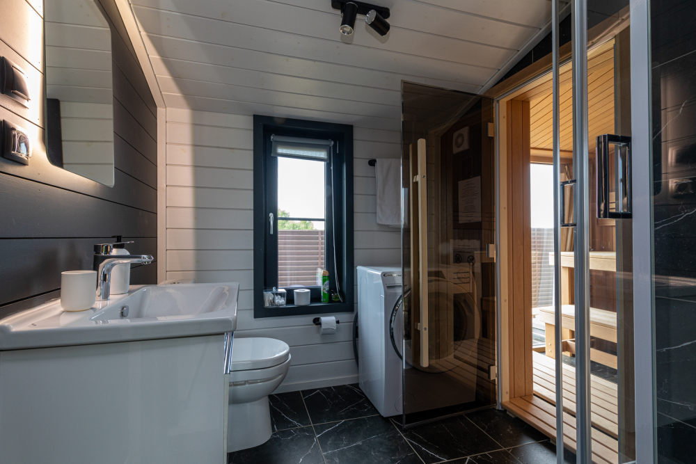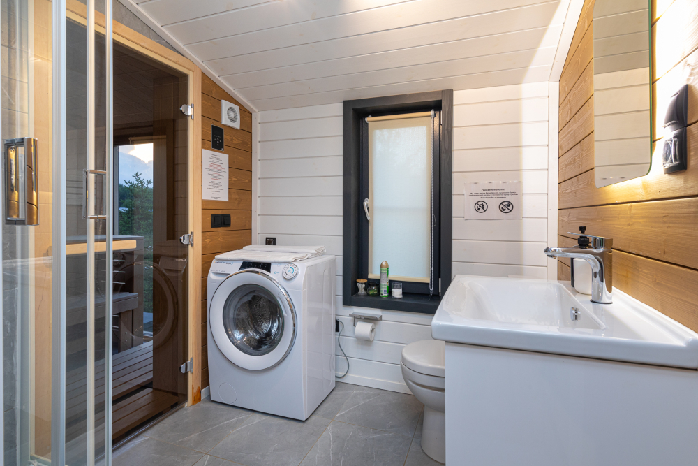 Сауна есть около домиков Дом Фьюжн с сауной.