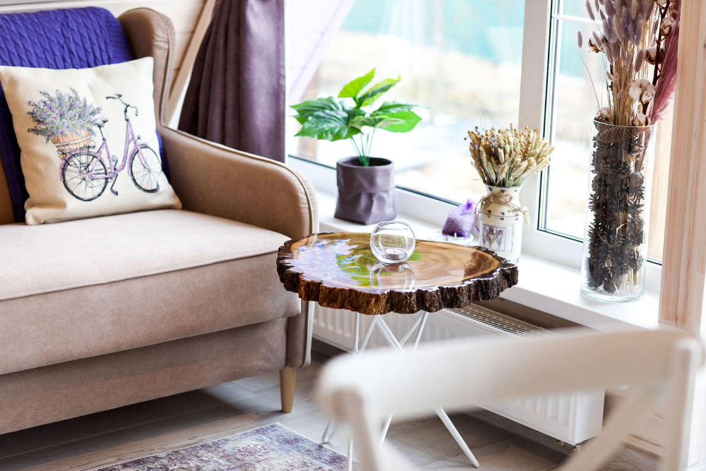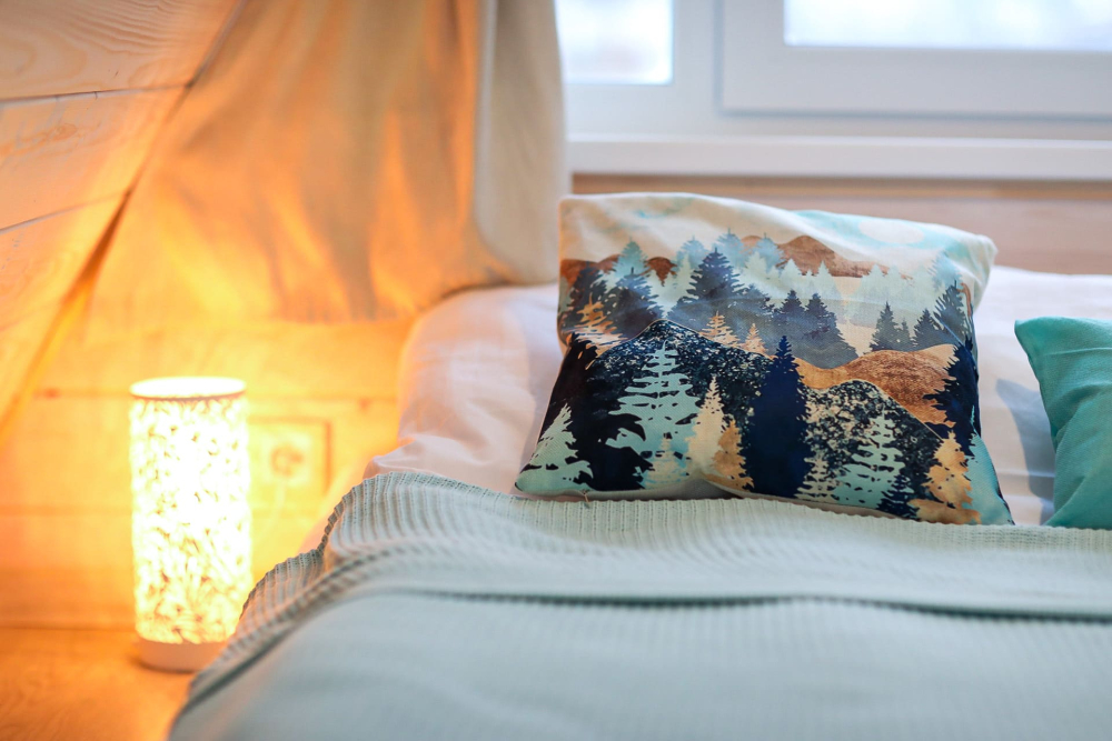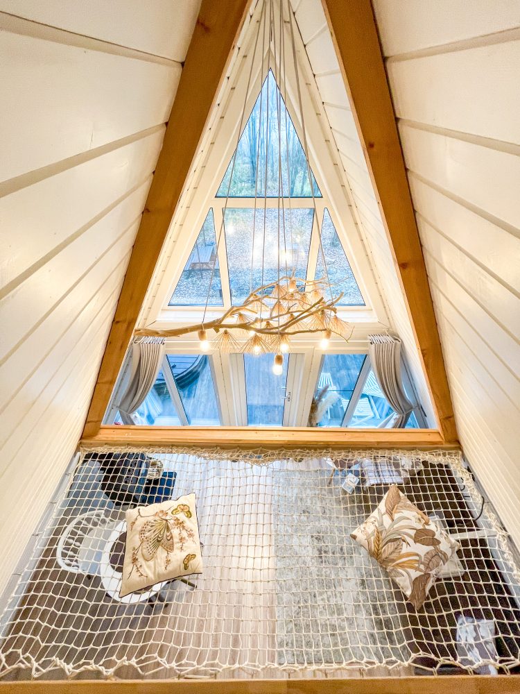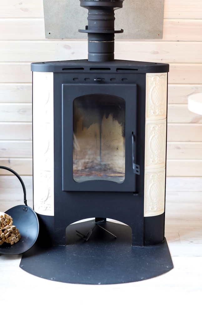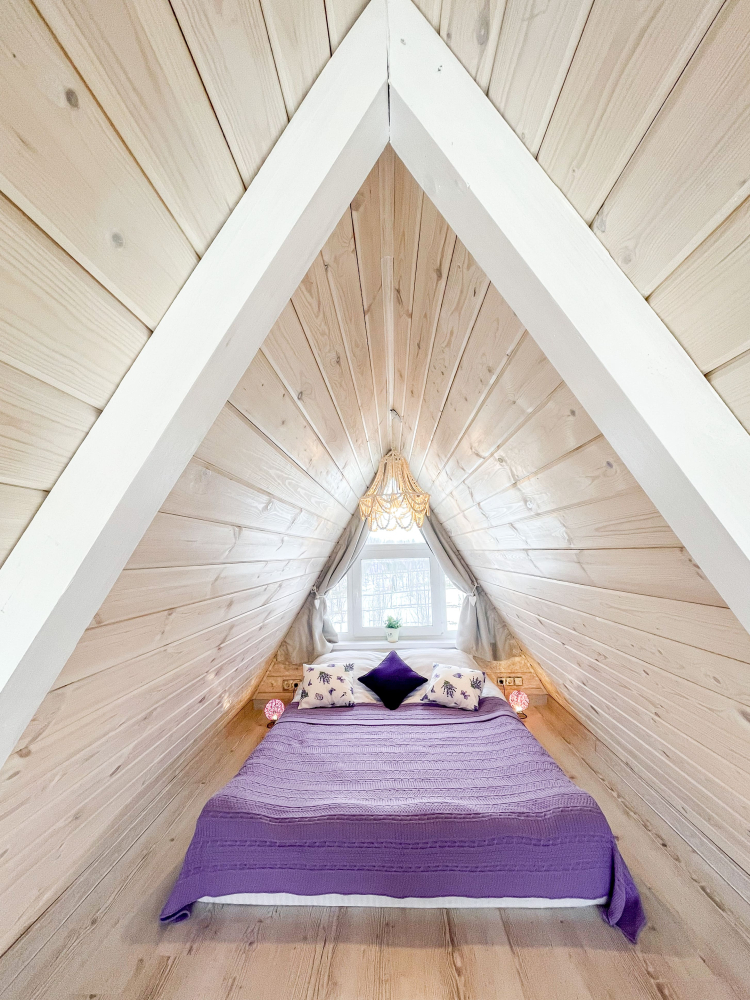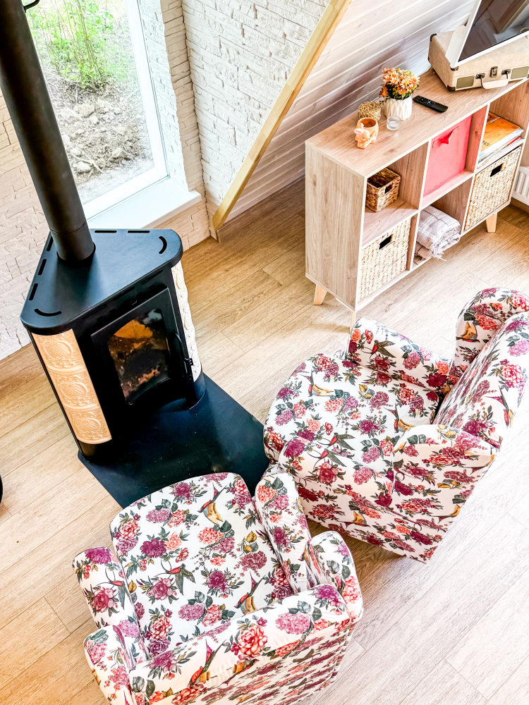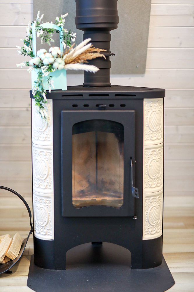 - Камин в А-фрейм домиках для уюта и тепла.
