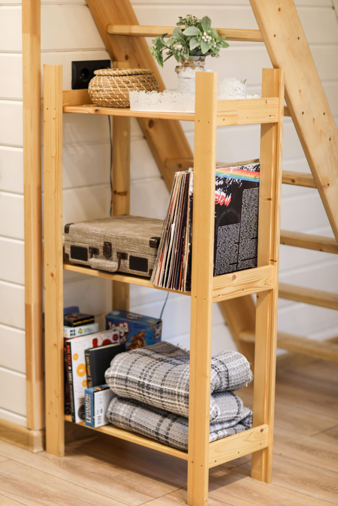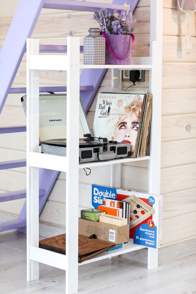 - Проигрыватель виниловых пластинок , телевизор или проектор, книги и настольные игры .