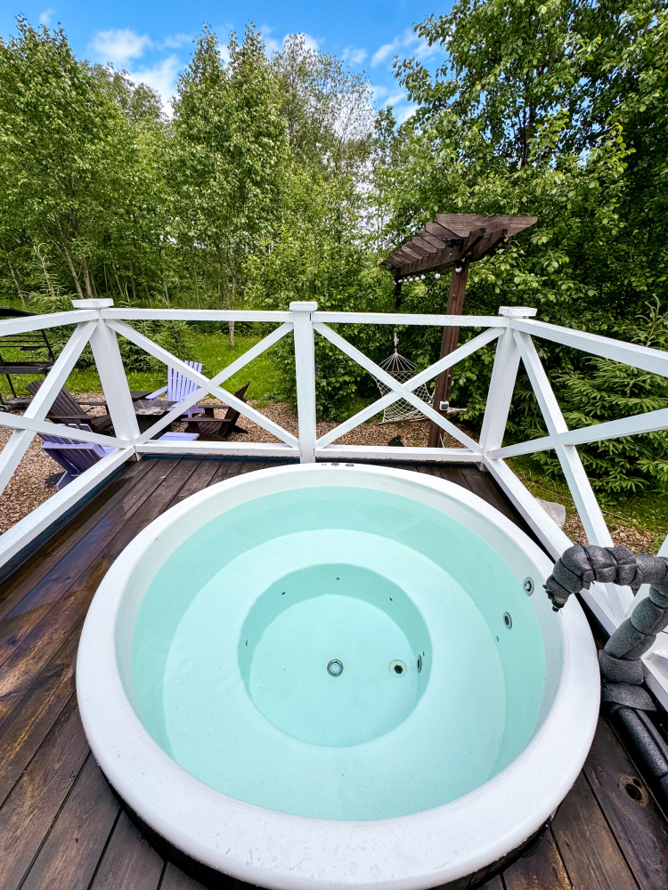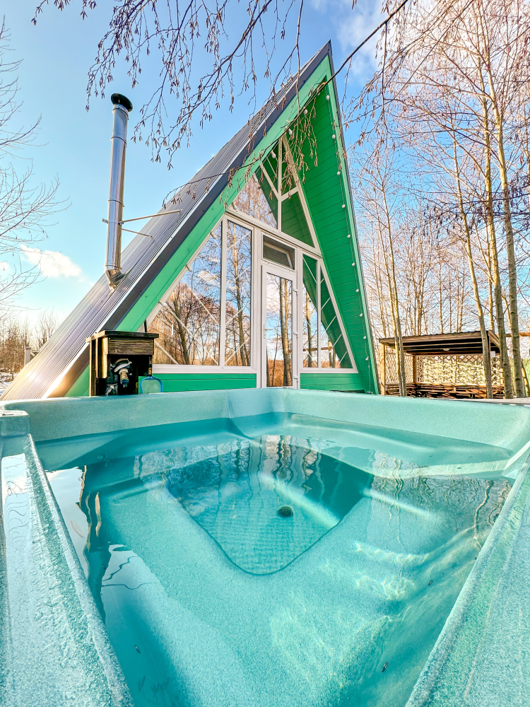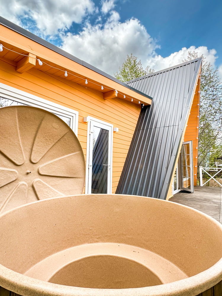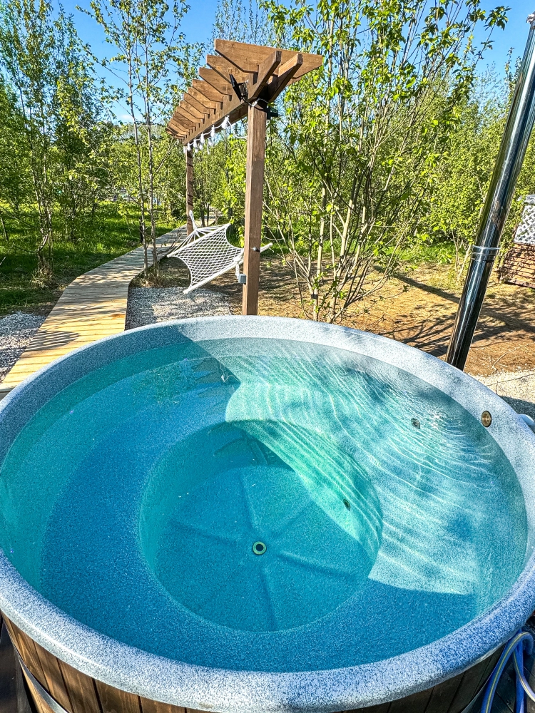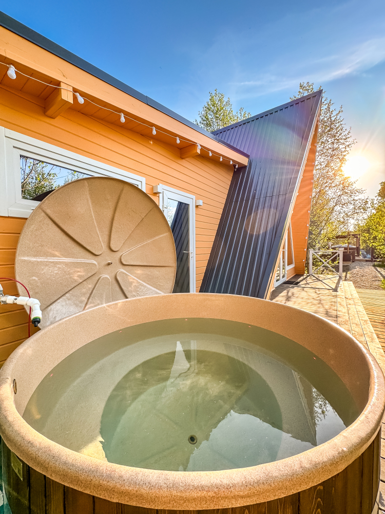 Горячий чан есть около домиков Белый дом, Красный дом, Синий дом, Оливковый дом, Желтый дом, Лавандовый дом, Мятный дом, Лазурный дом, Персиковый дом.