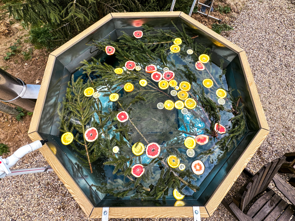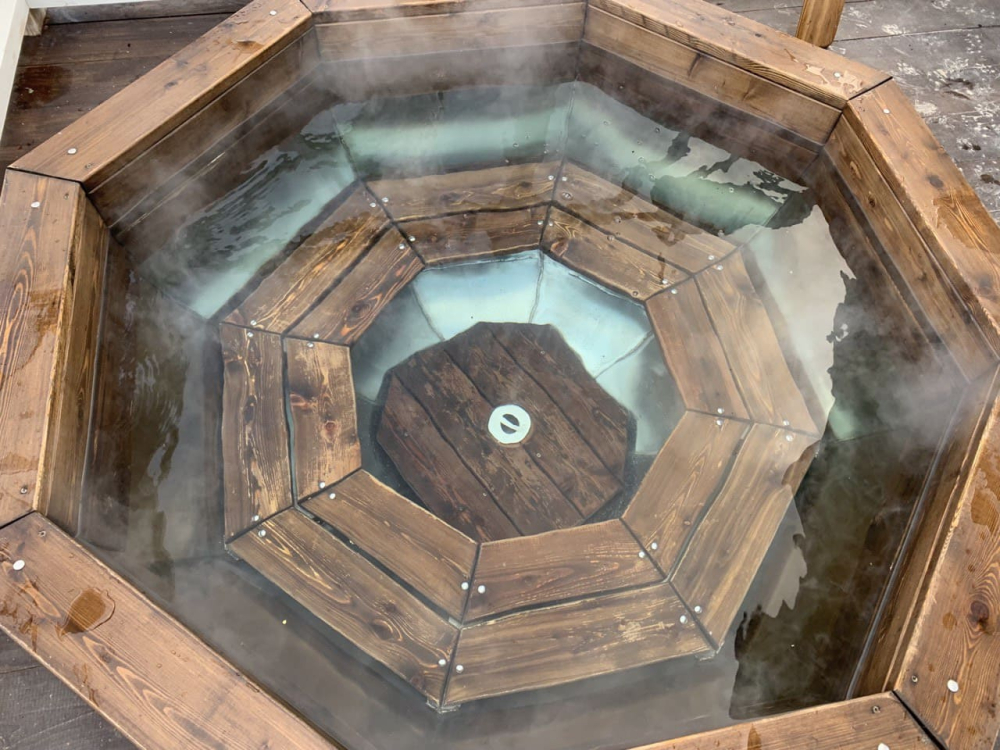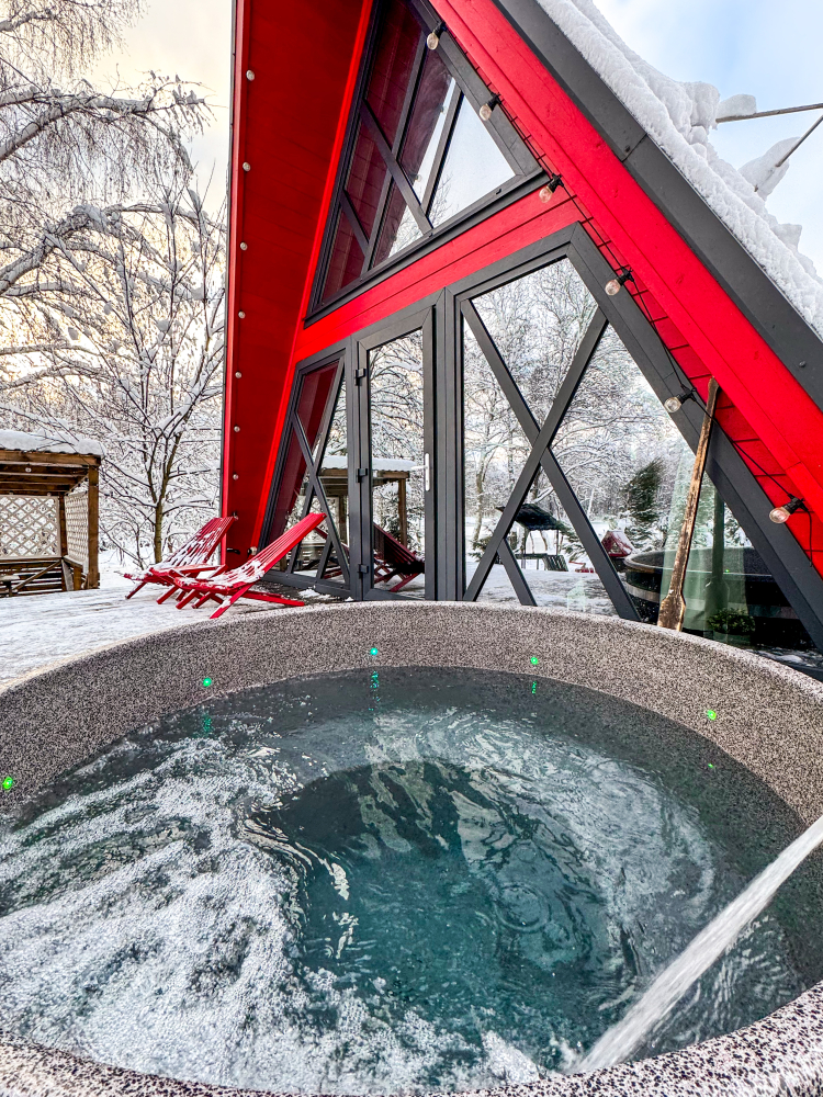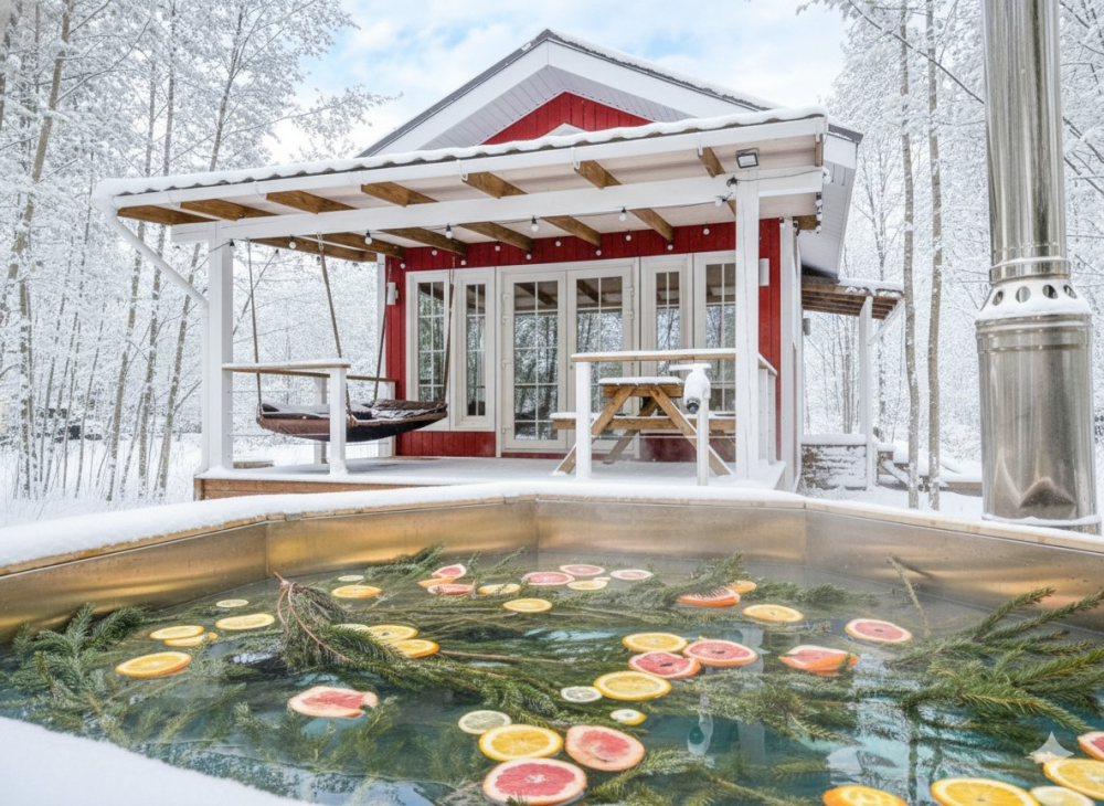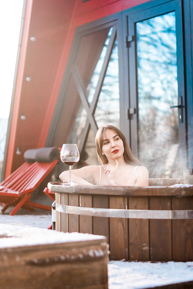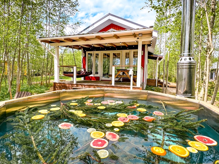 Горячий чан есть около домиков Белый дом, Красный дом, Синий дом, Оливковый дом, Желтый дом, Лавандовый дом, Мятный дом, Лазурный дом, Персиковый дом.