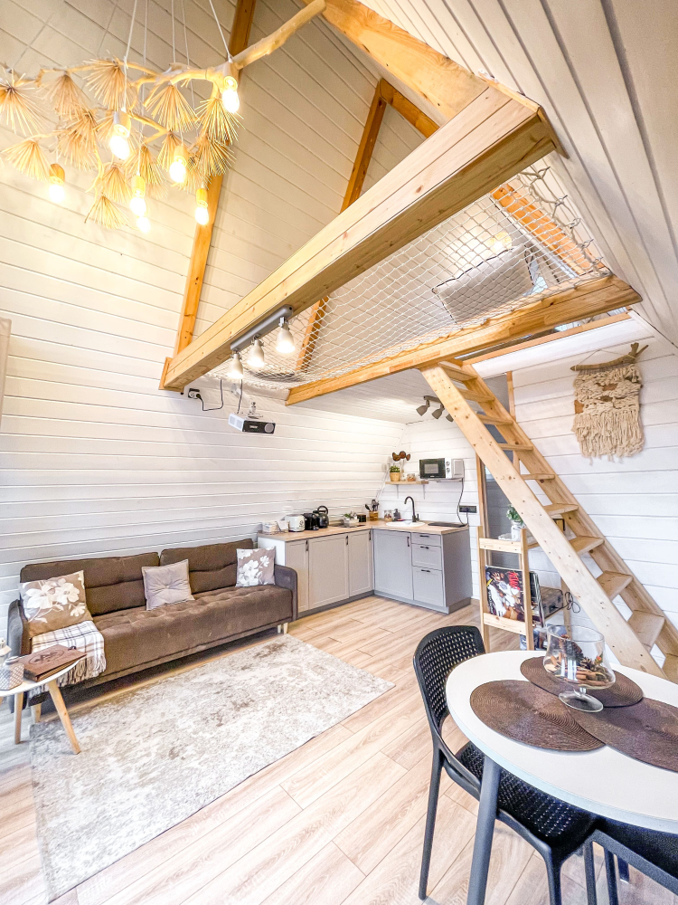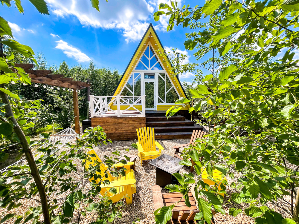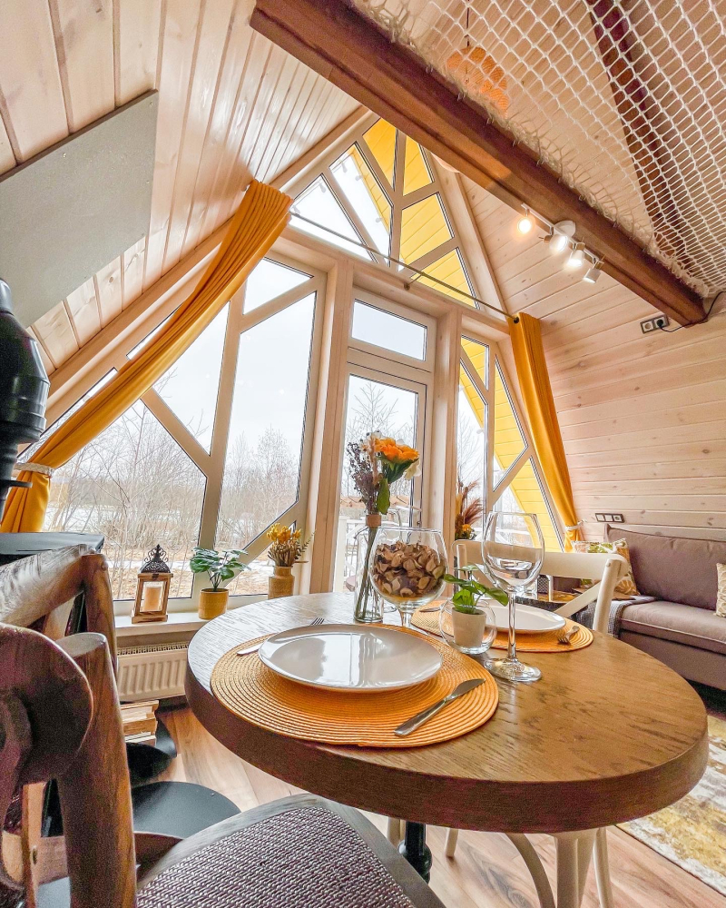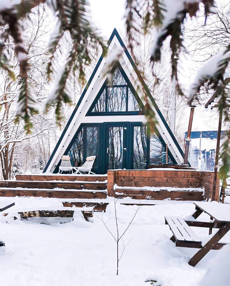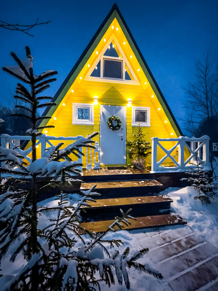 - Мы предлагаем уникальные круглогодичные домики А-образной формы в разных цветах и Этнодома в современном русском стиле, которые вмещают от 2 до 6 гостей: