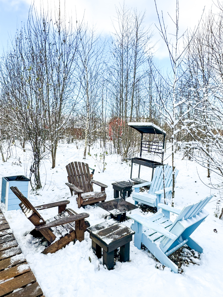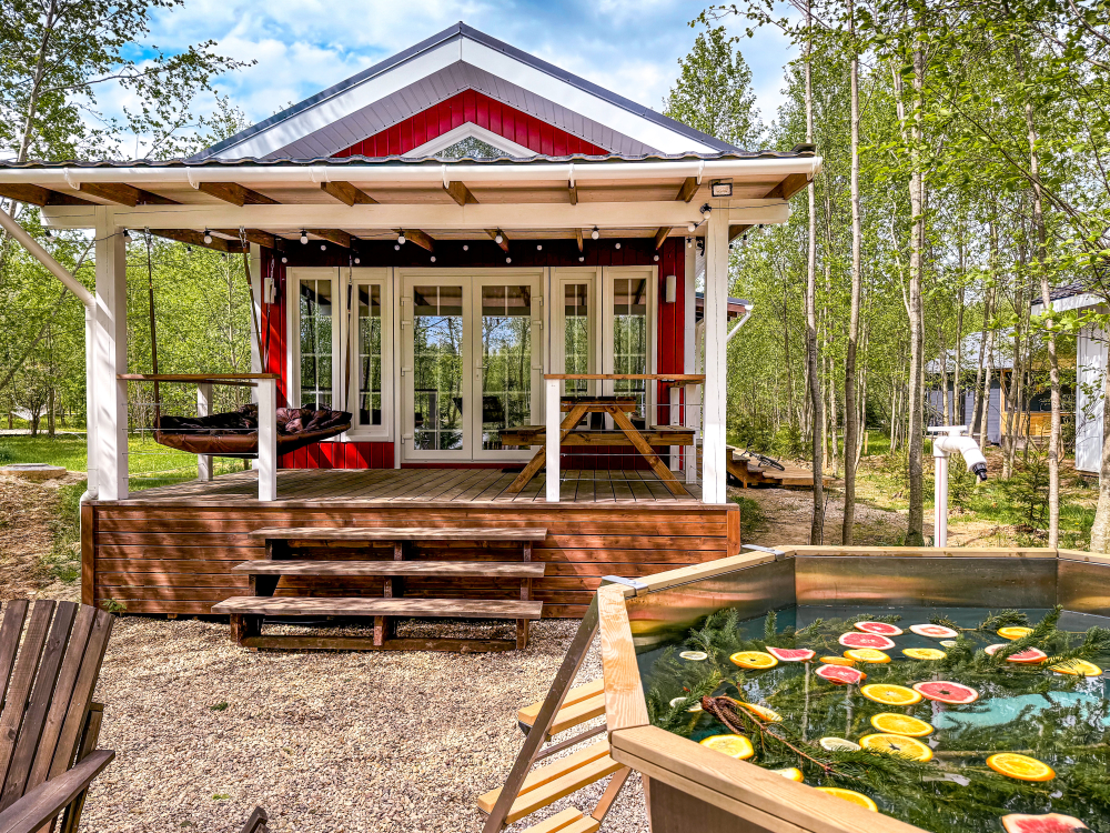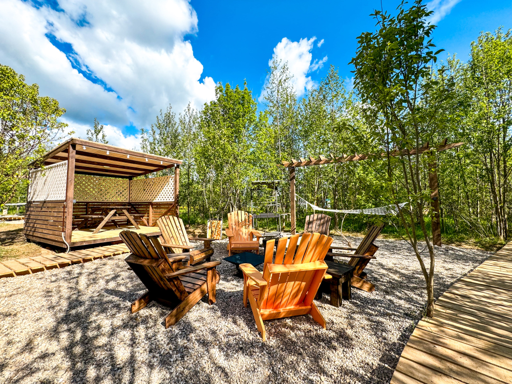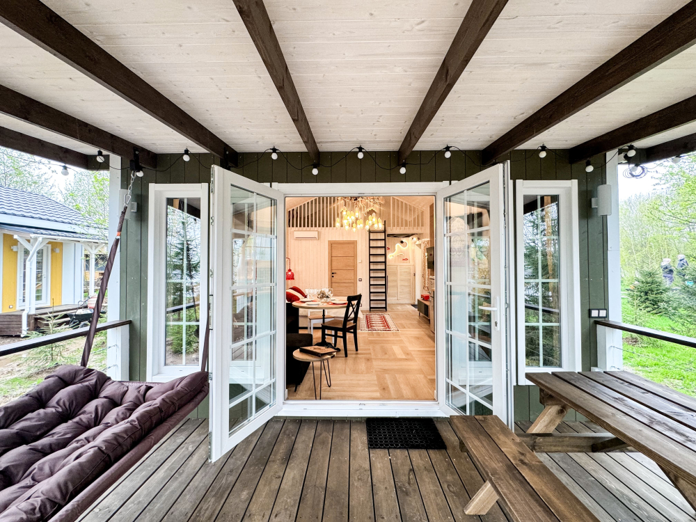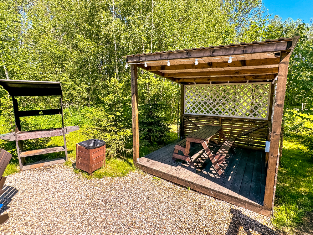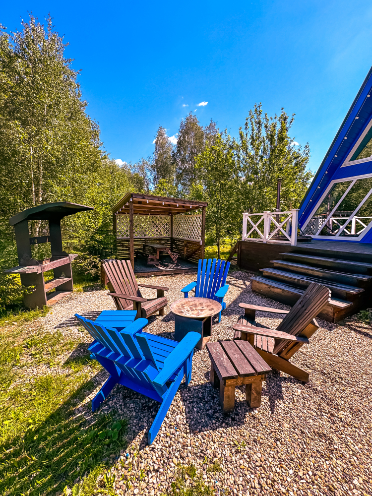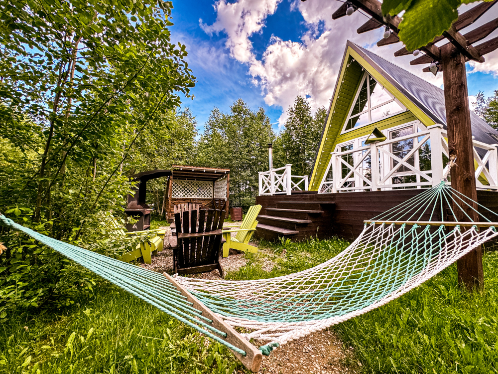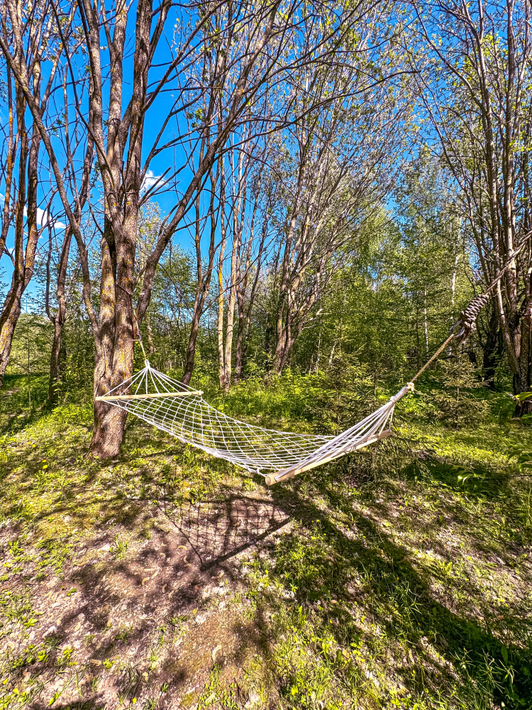 У каждого дома есть свой уличный гамак. Также на общей костровой зоне есть качели, на которых можно посидеть и посмотреть на огонь.