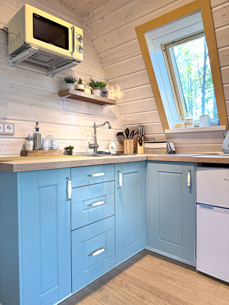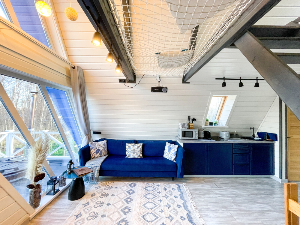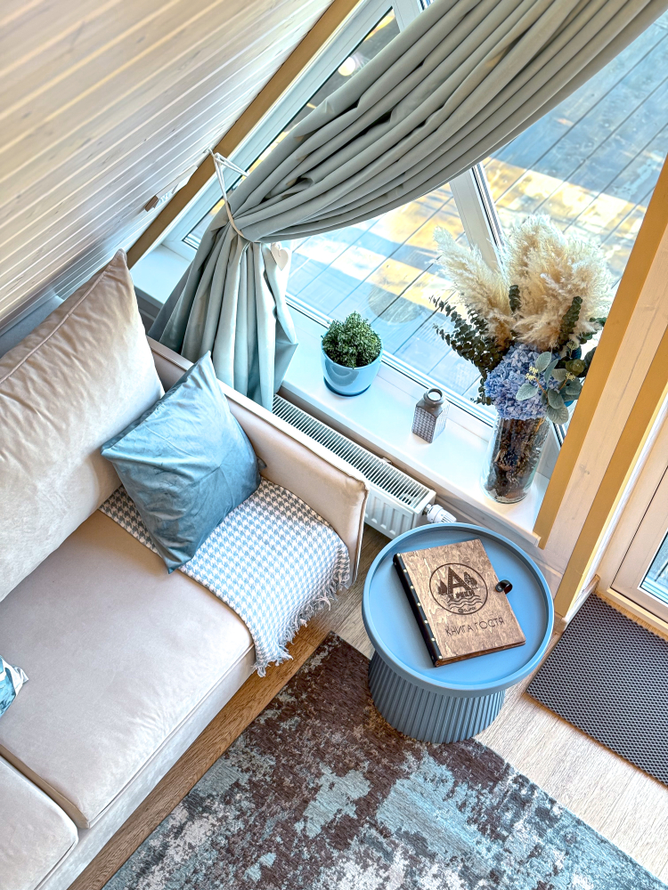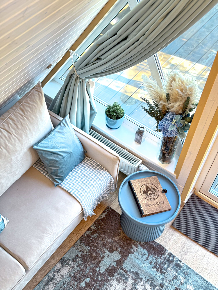 - Увеличенный домик : Лазурный (для комфортного размещения 2-4 гостей).
