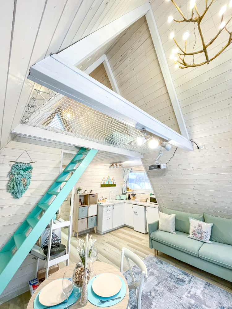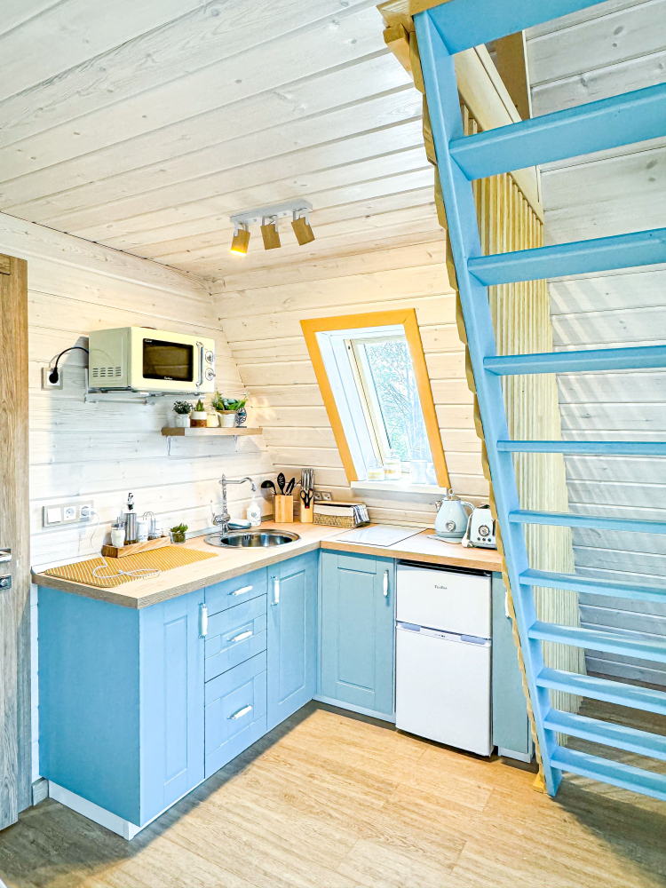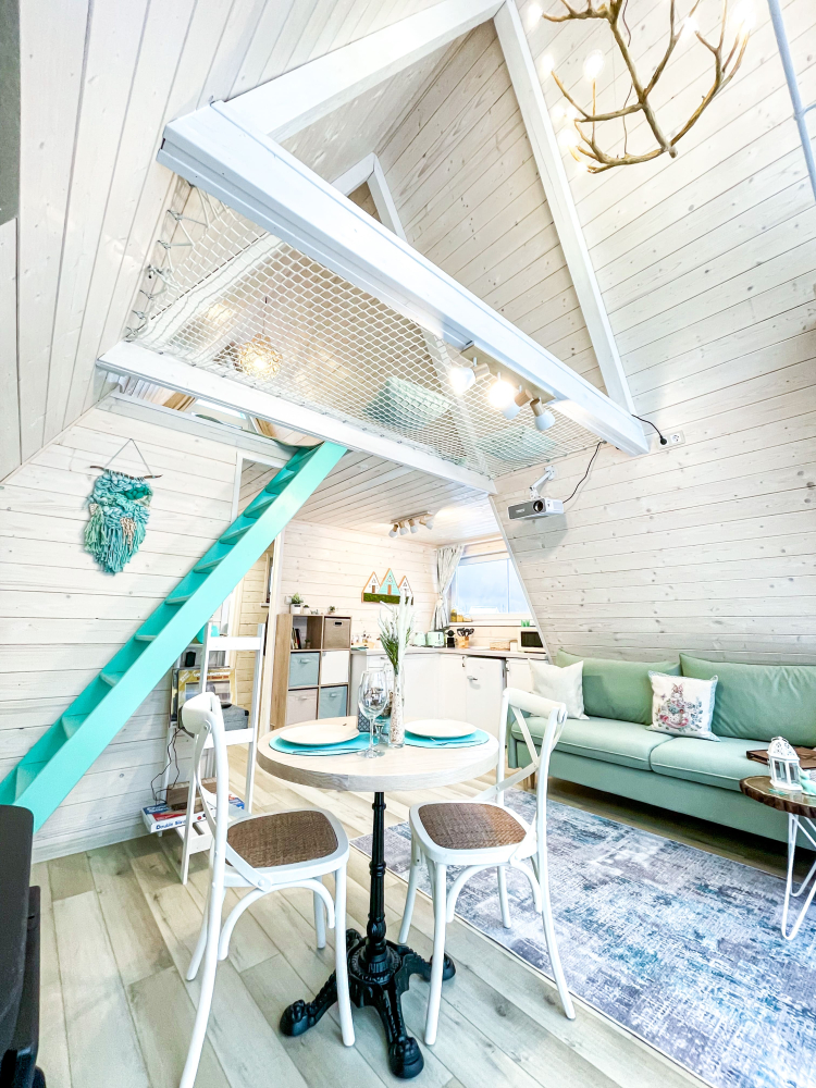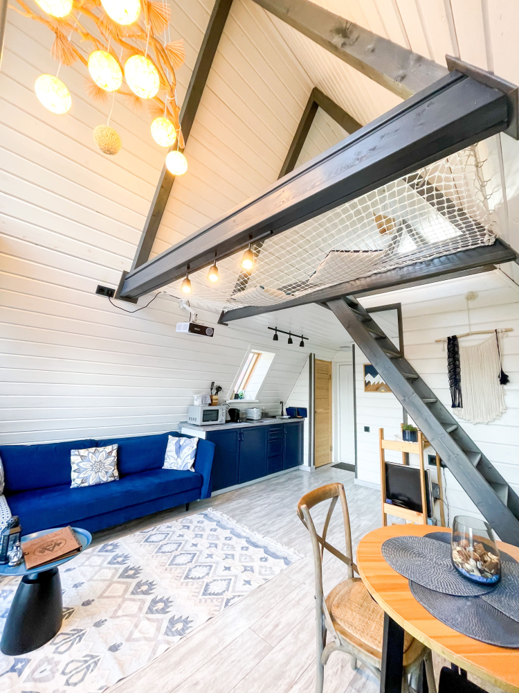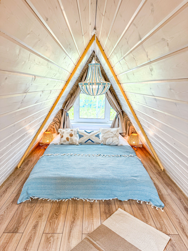 - Увеличенный домик : Лазурный (для комфортного размещения 2-4 гостей).