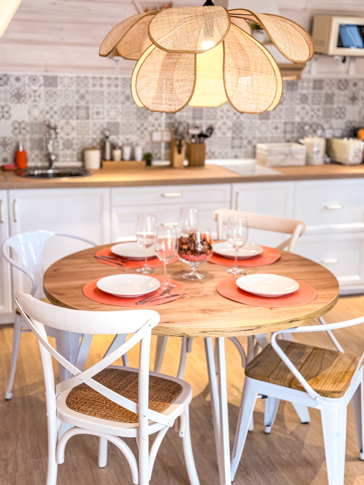 У каждого дом личная костровая зона, у стандартных домов на 4 человек, у персикового дома на 6 человек. Дрова для костровой на территории бесплатные.