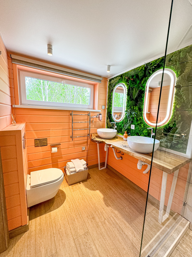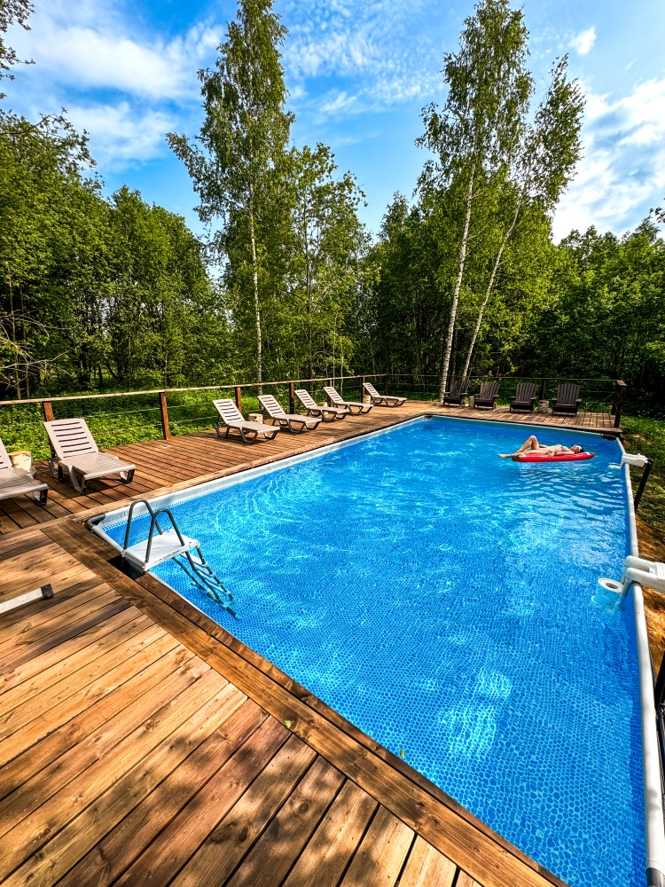- Летние активности : подогреваемый бассейн на берегу реки, песочный пляж с лежаками (можно купаться!), бесплатные лодка, сапборды, каяки и водные велосипеды, обычные велосипеды, спортивная площадка для волейбола, футбола, бадминтона, настольный теннис, вольер с кроликами, 2 десткие площадки, общая костровая зона для посиделок.
