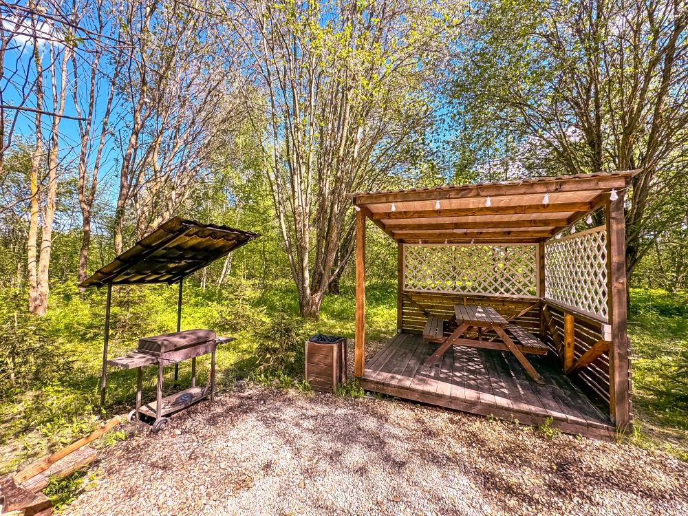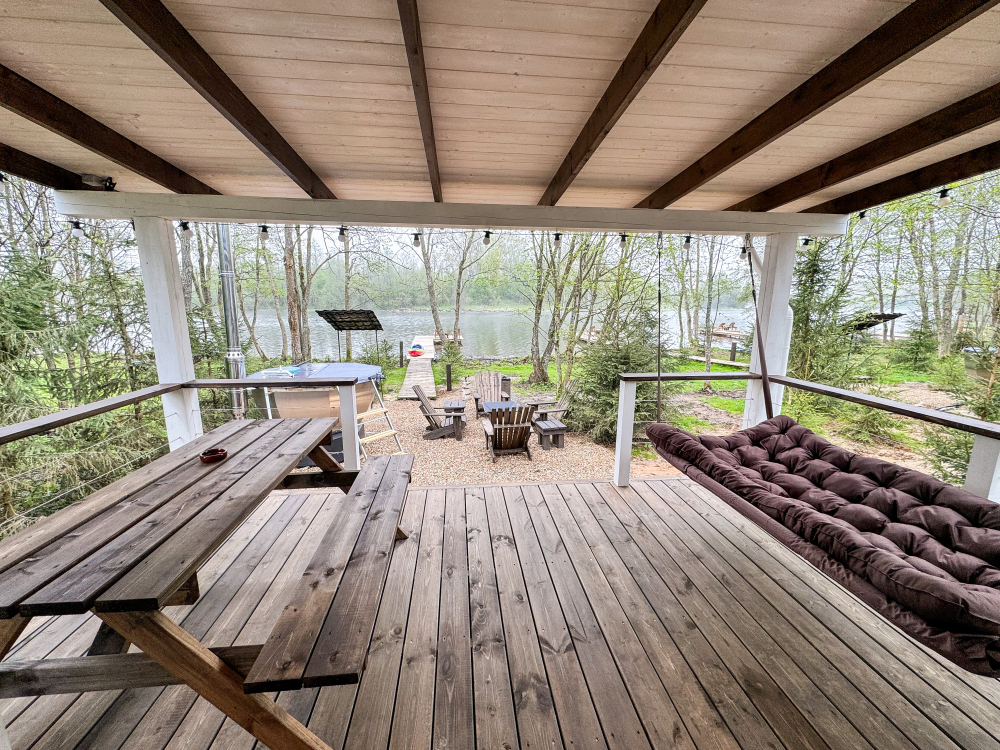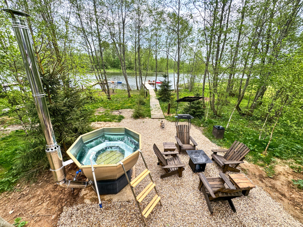 - Каждый дом имеет террасу с горячей купелью , из которой открывается живописный вид на реку, а также крытую беседку со столом, костровую и мангальную зоны. Здесь вы можете отдохнуть, наслаждаясь тишиной и природой.