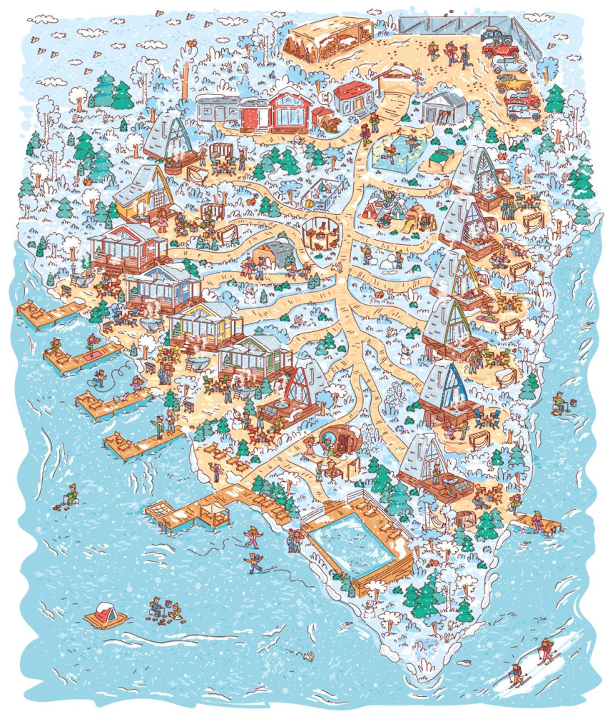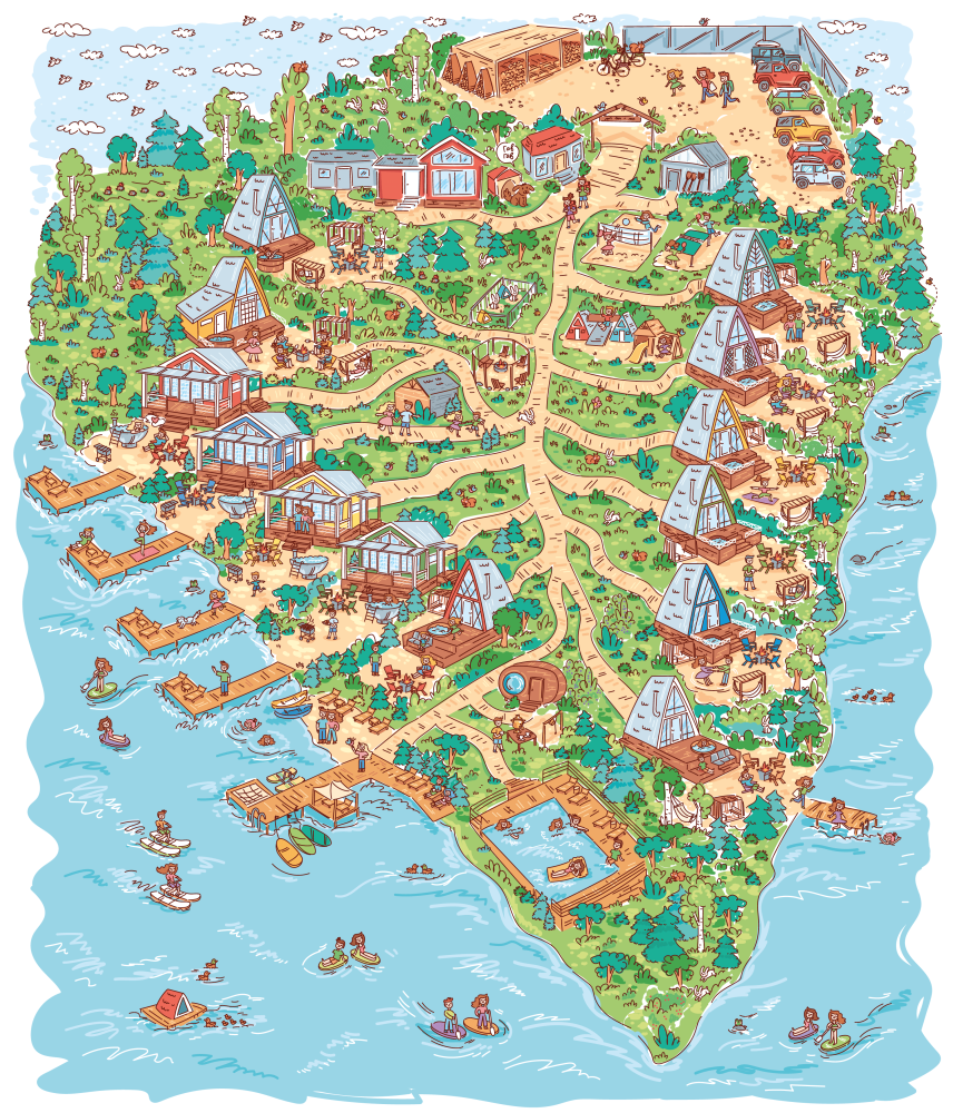 Костровая зона есть около домиков Белый дом, Красный дом, Синий дом, Оливковый дом, Желтый дом, Лавандовый дом, Мятный дом, Лазурный дом, Персиковый дом.