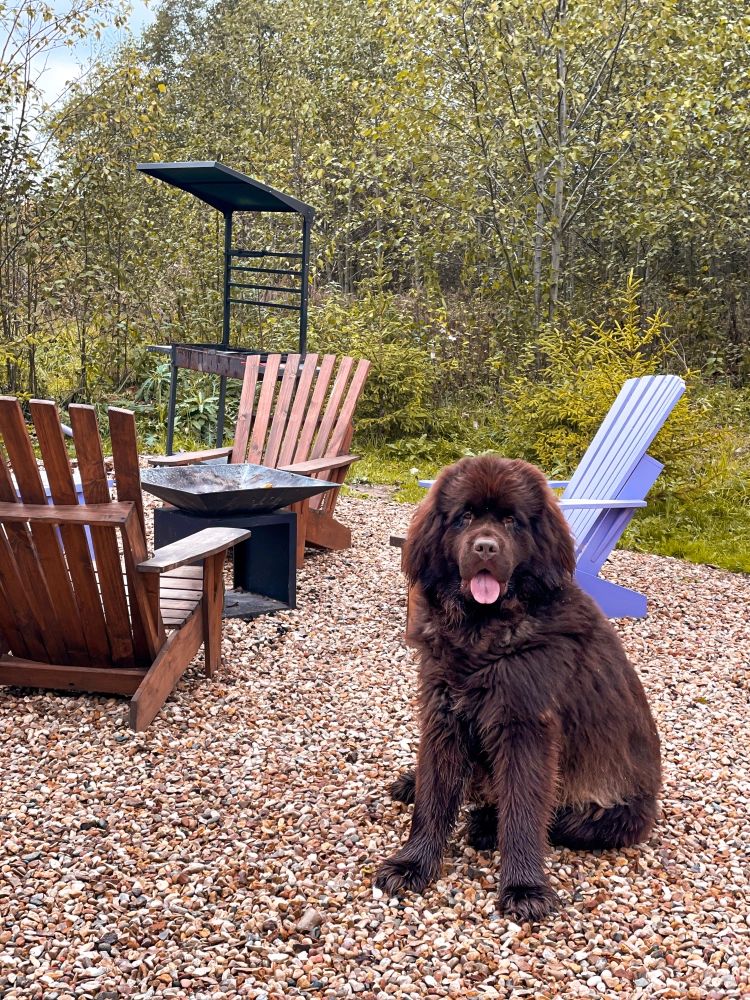 На территории проживает огромный и дружелюбный пес породы Ньюфаундленд - Рольф. Обожает обнимашки и почесывания от гостей, а вот обычной едой его угощать нельзя, так как он на сухом корме и у него будет болеть животик).
