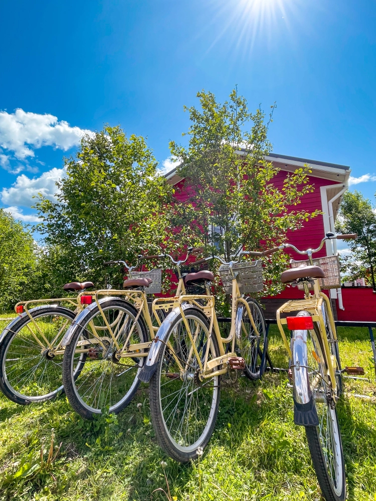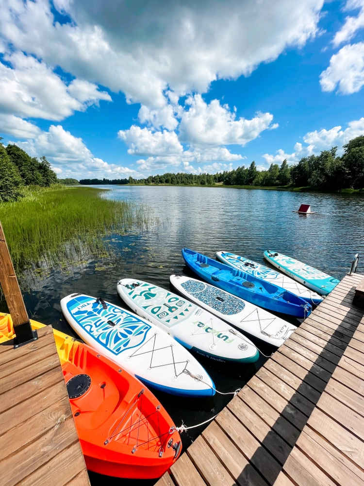 В теплое время года в бесплатном пользовании гостей 9 сапбордов, 6 семейных каяка (на 2 взр + реб), одна лодка на 4 человек, 2 водных велосипеда, 4 обычных велосипеда. Все бесплатно для проживающих. Ничего заранее бронировать не нужно, берёте, когда свободно. Очередей не бывает, все успевают покататься, так как все пользуются в разное время.