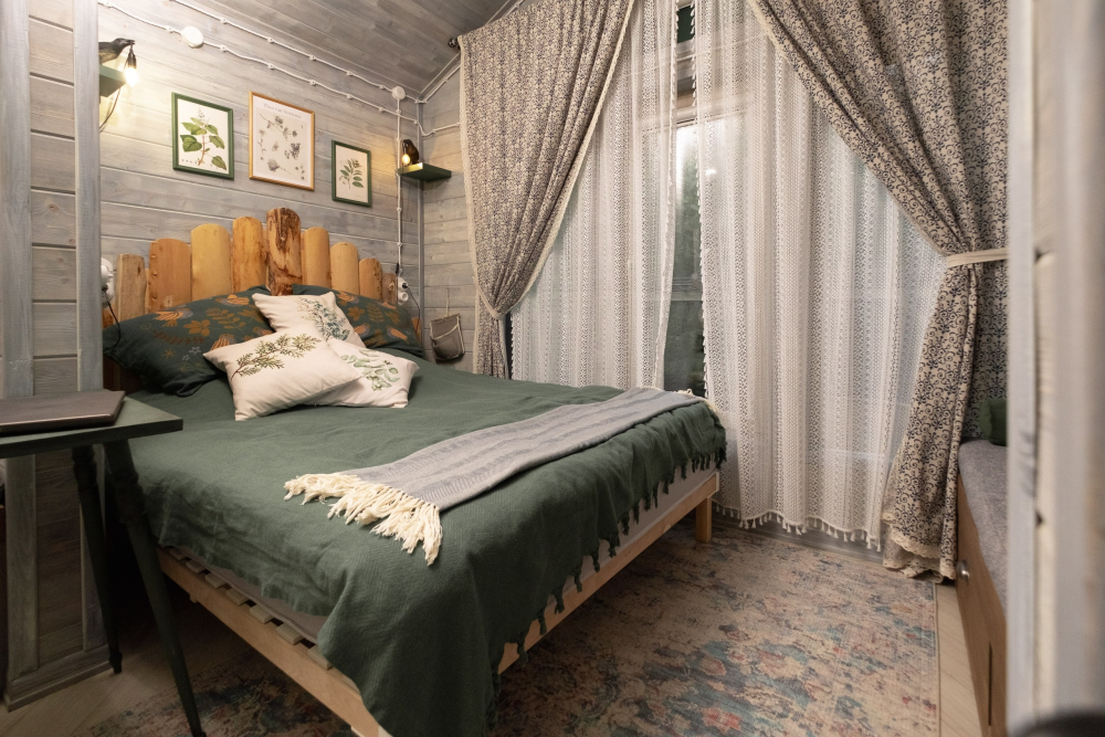 - Одна спальня с большой кроватью (160х200) с ортопедическим матрасом с эффектом памяти для максимального комфорта и спокойного сна.