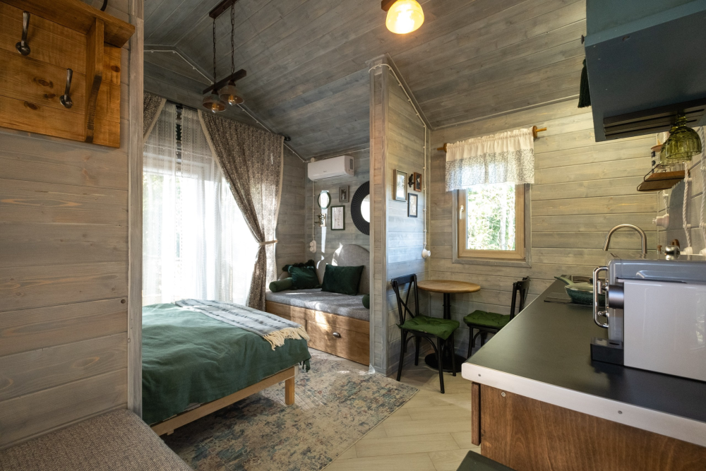 - Уединение и комфорт: Дом окружен отдельной территорией, что обеспечивает конфиденциальность. В каждом доме есть дворик с индивидуальной зоной для отдыха, барбекю и сибирским чаном-куплю для отдыха на свежем воздухе.