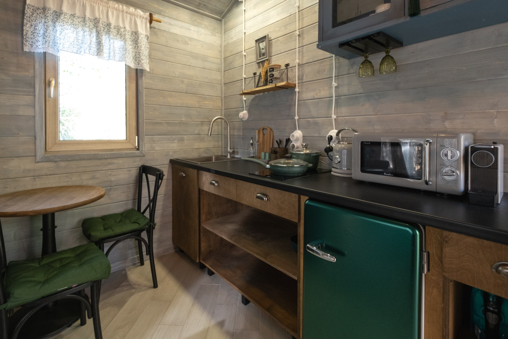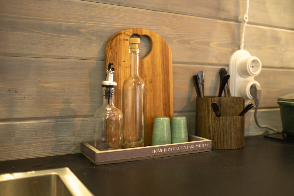 - Запасы для удобства: капсульный кофе, черный и зеленый чай, сахар, соль, перец, растительное масло, печенье.